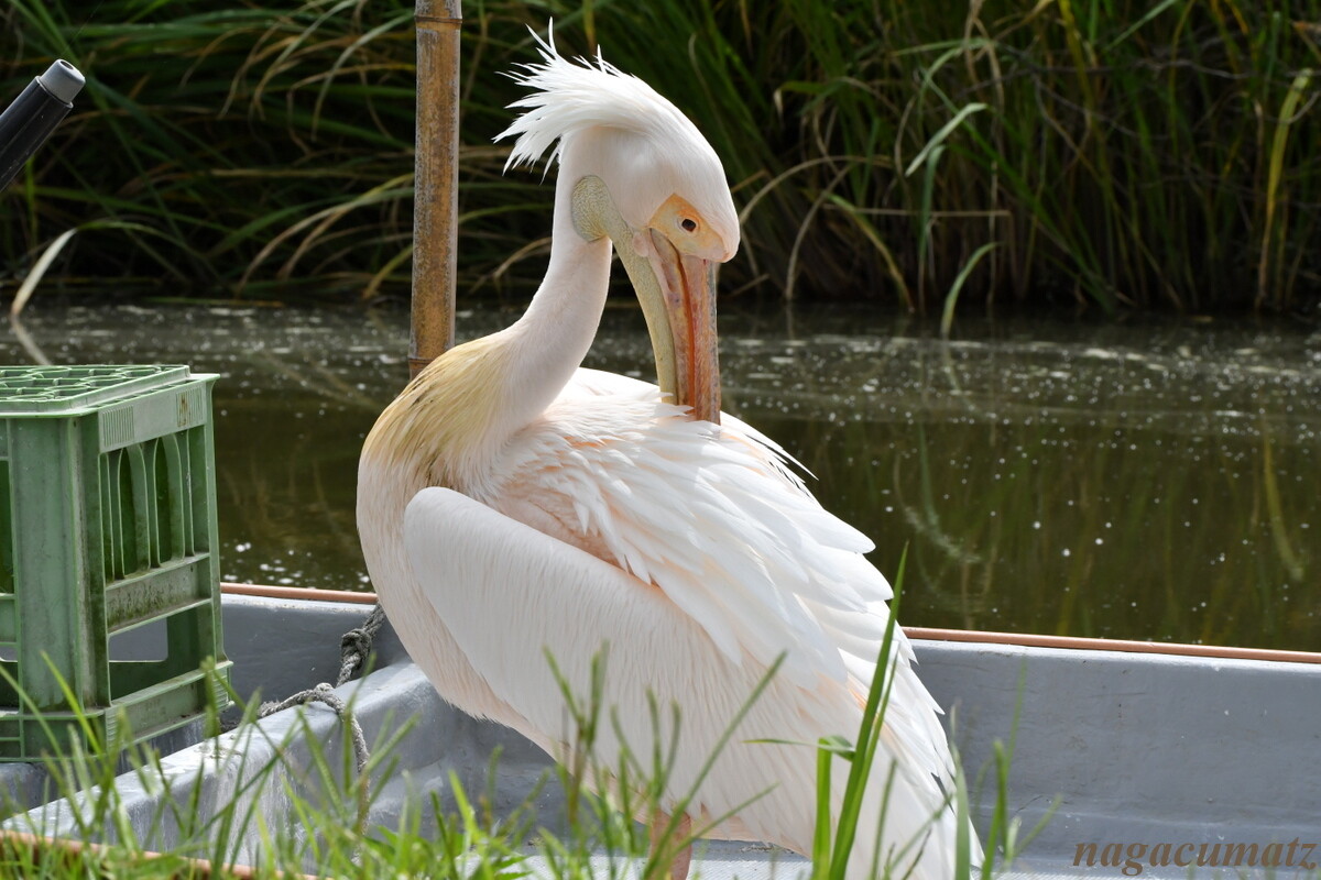 ここに飛来してきたのが94年で、それからずっと住み着いて、漁師さんのボートに乗って一緒に漁に出るなどしているのだそう。一般的に寿命は野生下で15~25年、飼育下で25~30年と言われているが、54年生きたペリカンも居るのだとか。もともとペリカンは日本には居ないので、生息地から飛来してきたのか、放鳥だったのか。そしてその時に何歳だったのかもわからないが、少なくともこの印旛沼に来て28年は経つと言うから、終の棲家にここを選んだもよう。