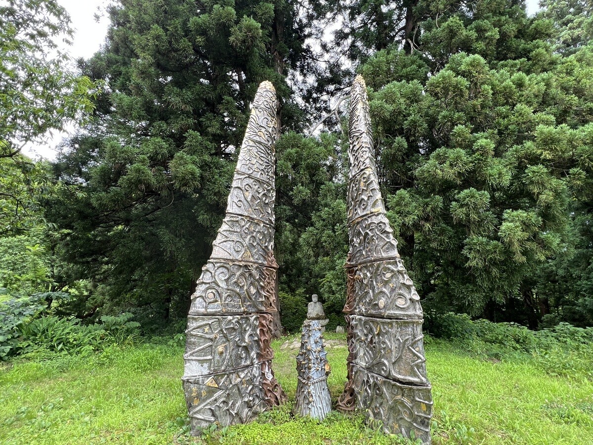 D047 トーマス・エラー Thomas Eller(ドイツ)「人 自然に再び入る」 作家さん本人の顔と手足の写真が焼き付けられた高さ4メートルの人型が立ててあるが、2000年の制作当時から時を経てツタが絡まってかろうじて顔がわかる程度に。