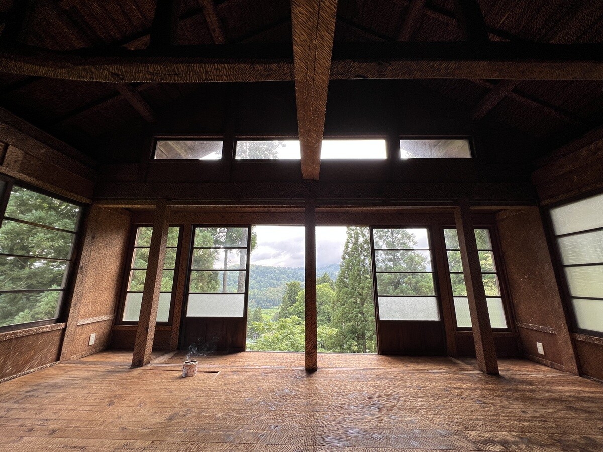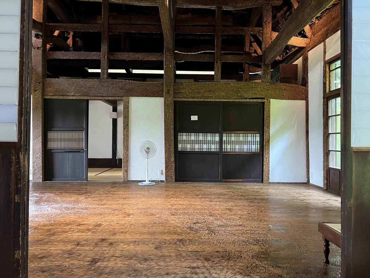 D143 鞍掛純一+日本大学芸術学部彫刻コース有志「脱皮する家」 外観は普通な築150年ほどの古民家。ご近所にも何軒も古民家があるが、それぞれ住んでおられる。この辺りには、セブンイレブンとスーパーマーケットが週に2度ずつ、販売車が訪れてくるのだそう。