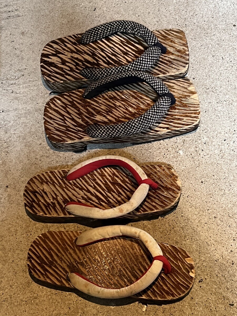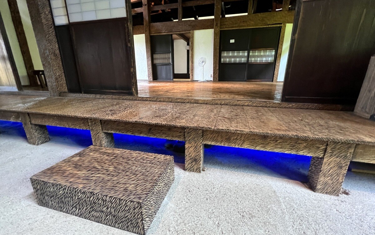 上がり框や足元なども全部彫られている。裸足で歩かせてもらったが、刻まれた凹凸が何とも心地良い。