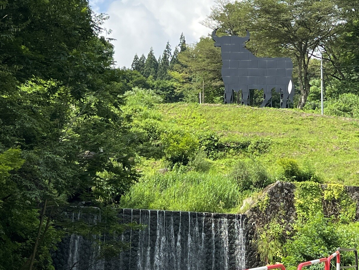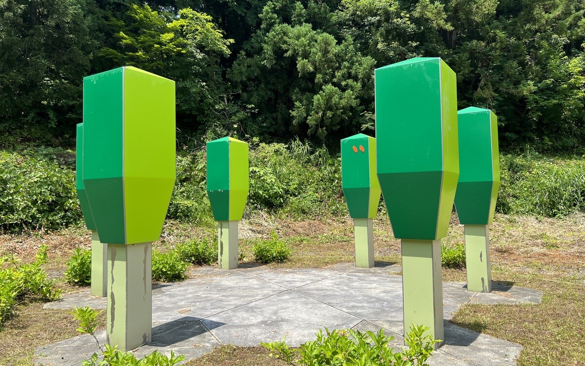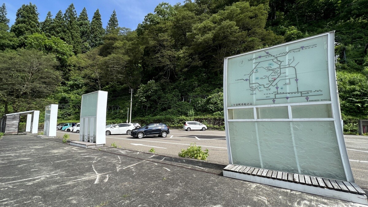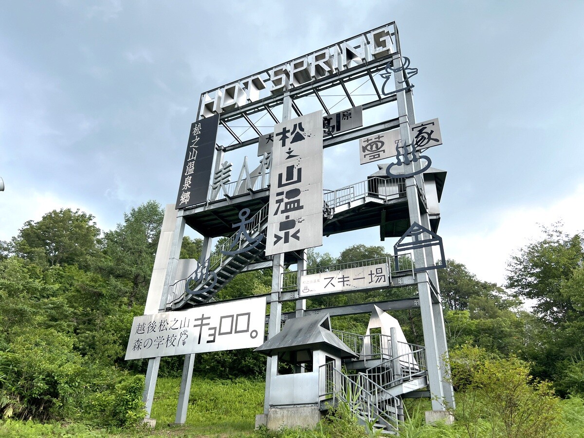 交差点にある高さ20メートルの建物は、松之山の地図となっており、文字はタイポグラファーの浅葉克己氏によるもの。