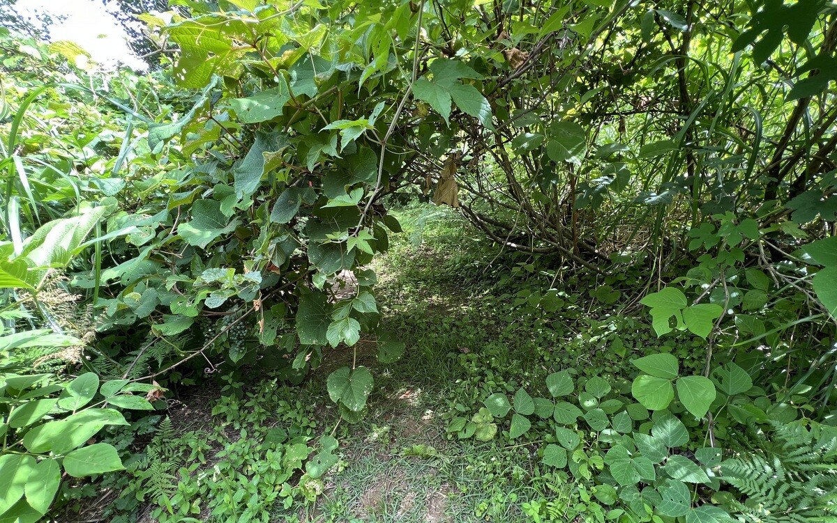 Y002 ケンデル・ギール Kendell Geers(南アフリカ)「分岐点だらけの庭」有刺鉄線のようなものに囲まれた檻は、かつての南アのアフリカ人居住地(タウンシップ)を思わざるを得ないが、10年以上かかってツタが絡まってきたとのこと。