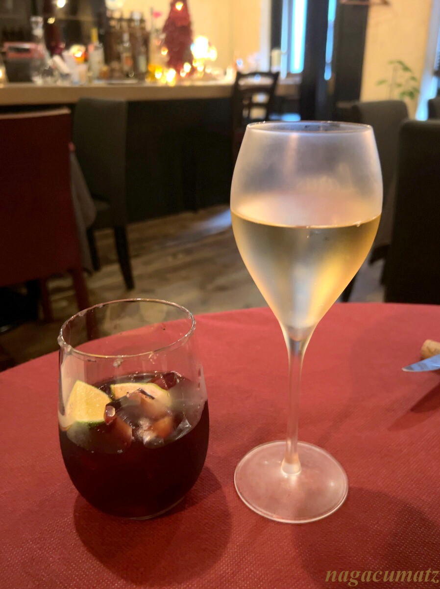 フランチャコルタ 1200円、赤のサングリア 850円や、キャンティクラシコ 1000円と友に。サングリアには、カルダモンやクローブなどが入っていた。