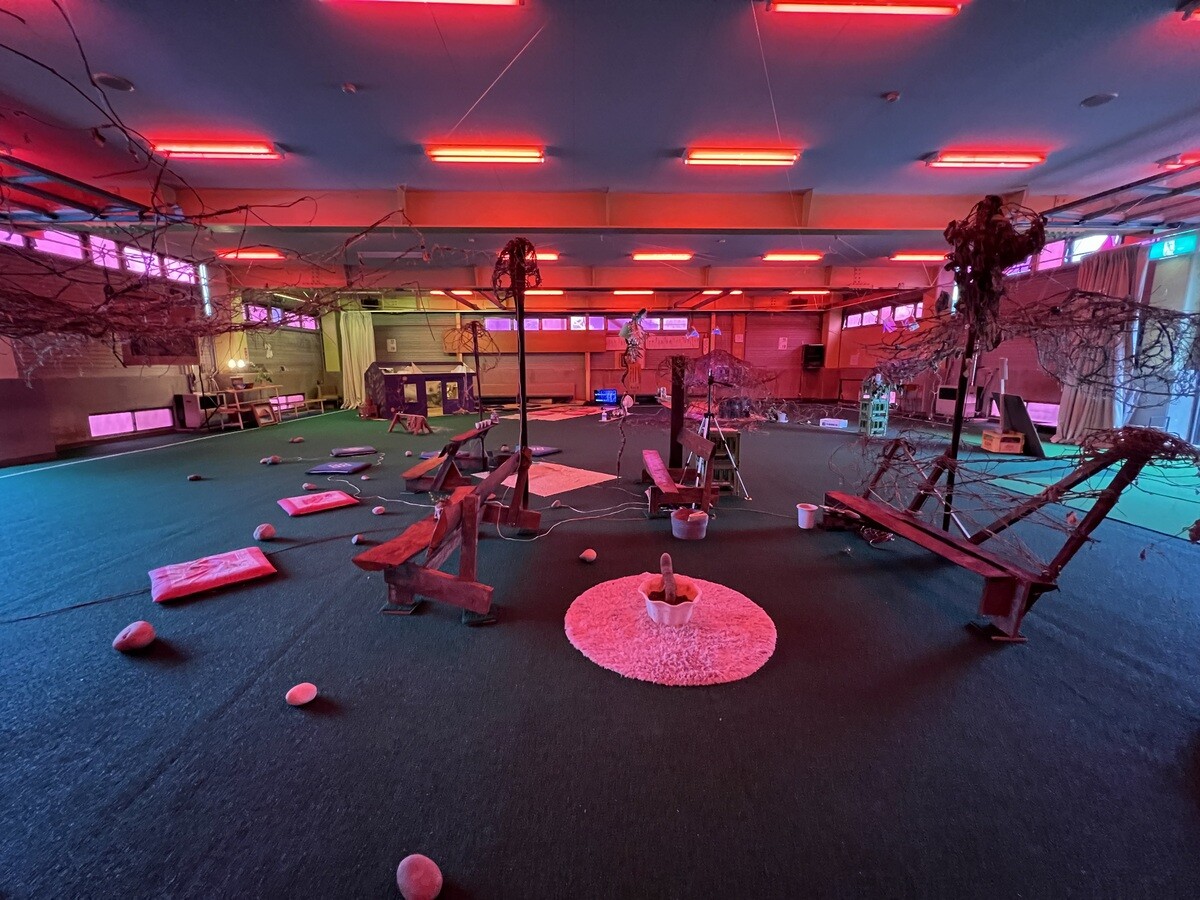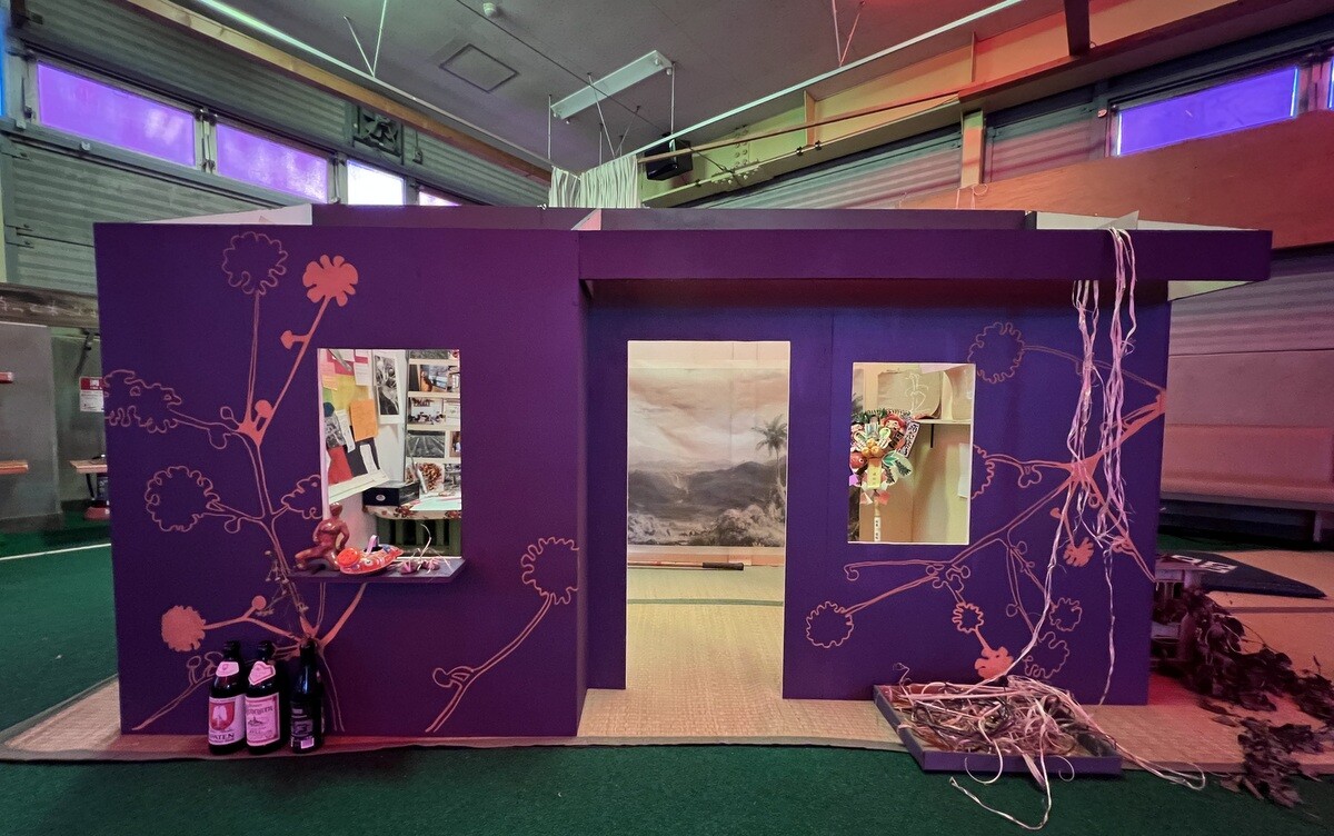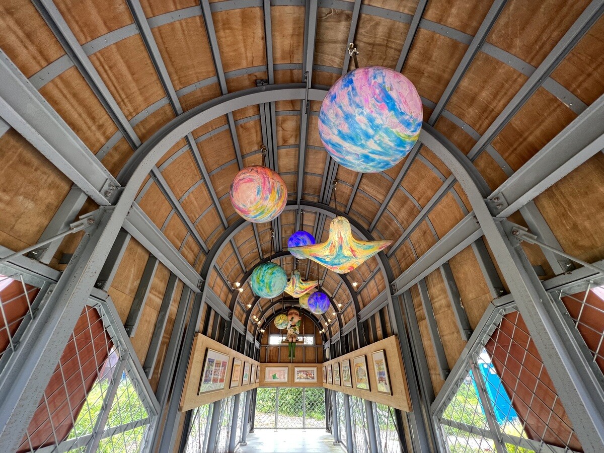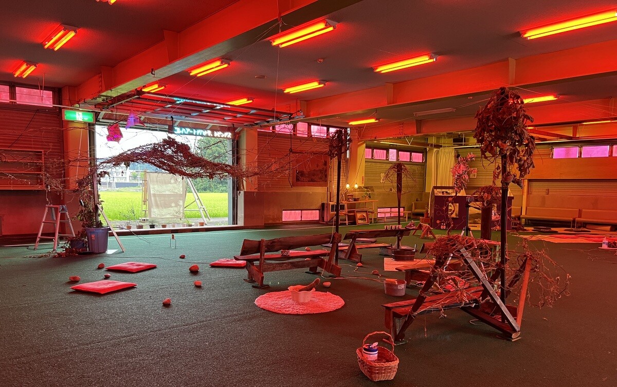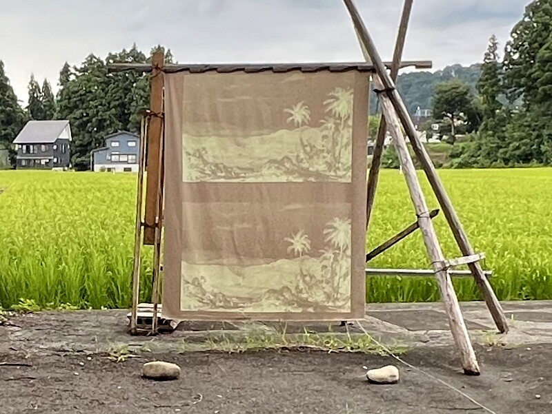 T325 ジミー・リャオ 幾米(台湾)「Kiss & Goodbye (土市駅)」 妻有特有のカラフルなかまぼこ型倉庫を使用。
