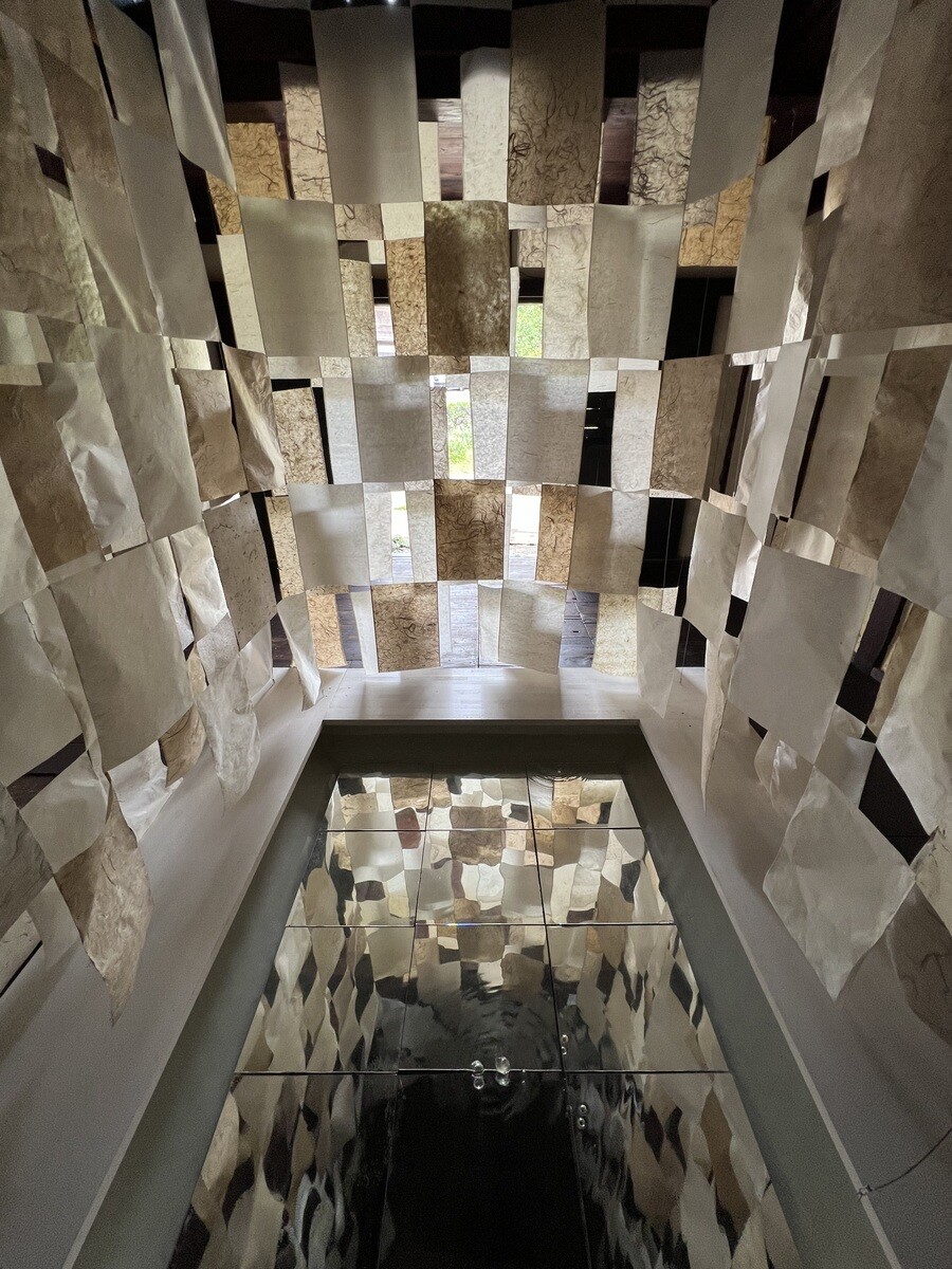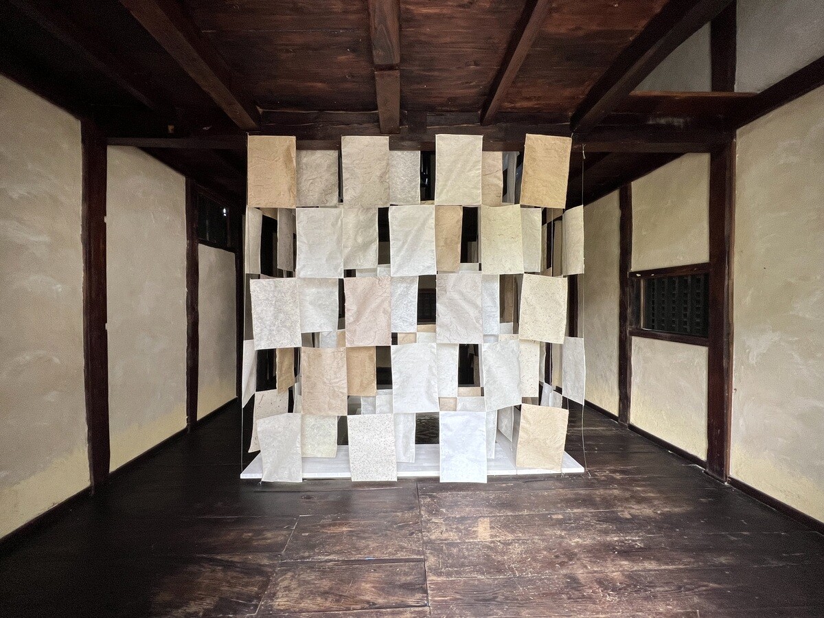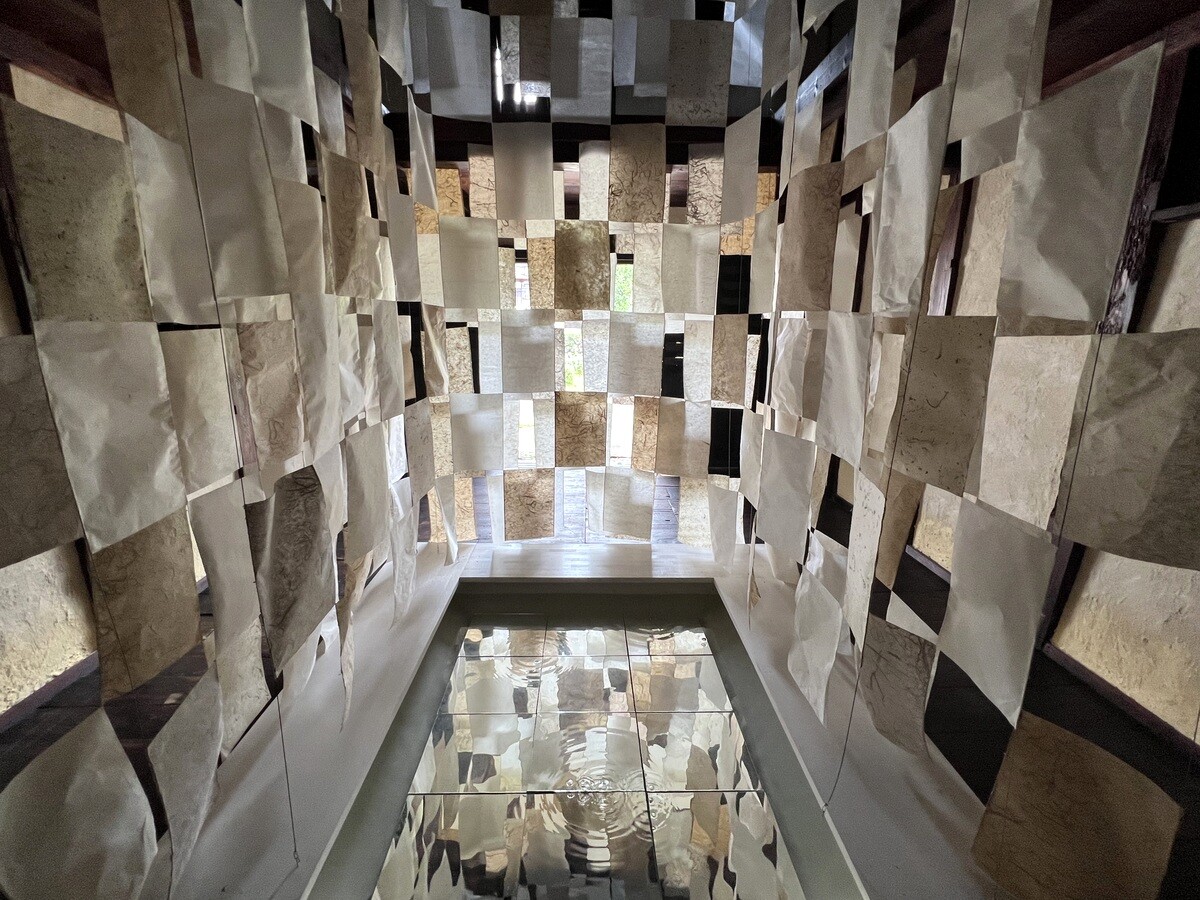T423 深澤孝史「スノータワー」 クマ武と言うメーカーの雪かき用のスノーダンプを積み上げた作品。スノーダンプは大・中・小とあるが、これは小サイズを60個積み上げて作ってある。小と言っても、ひとつが約4キロの重さ。もともと米倉だった所を、現在は防災センターとして使用し、今回のアート展示場となった。