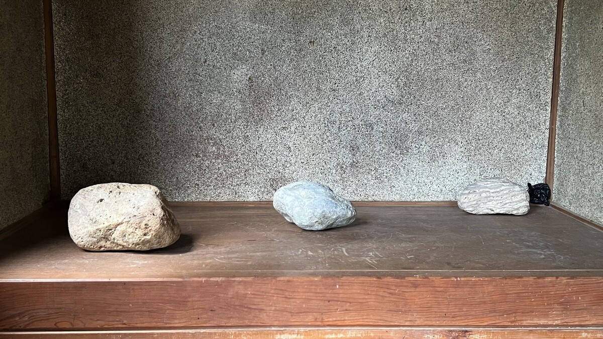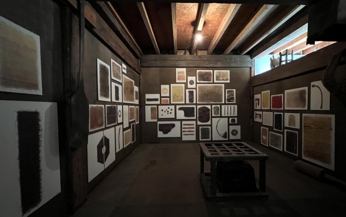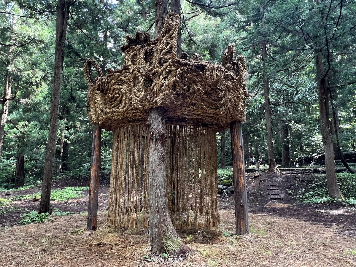 二階は、白い空間となっていて、小さな孔から覗くと、そこには山が表現されている。