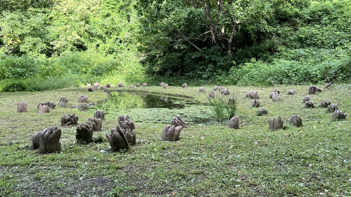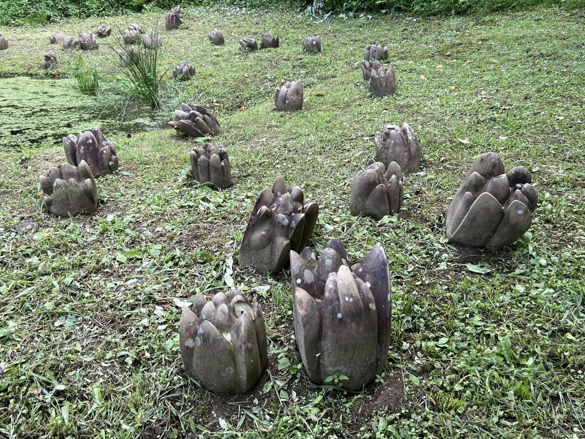 D011 マダン・ラル Madan Lal (インド)「平和の庭」 池のほとりに、大理石で作った蓮の花のつぼみが並ぶ。ヒンズー教で蓮は神様を意味するのだそう。