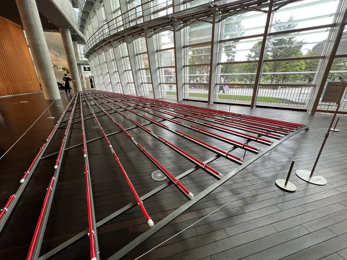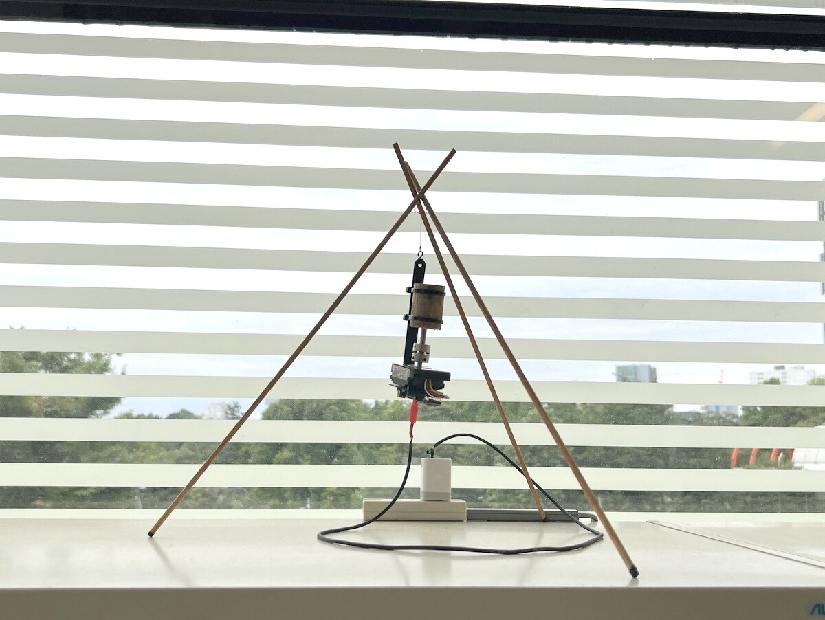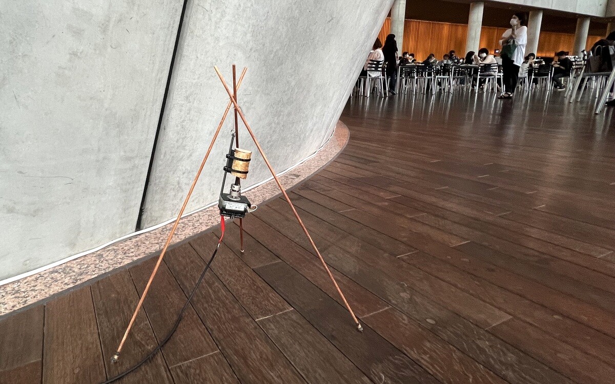坂本洋一「Floating Surface」シリコン製の弦が振動しながら上がったり下がったり。細いので画像には撮り辛いが💦