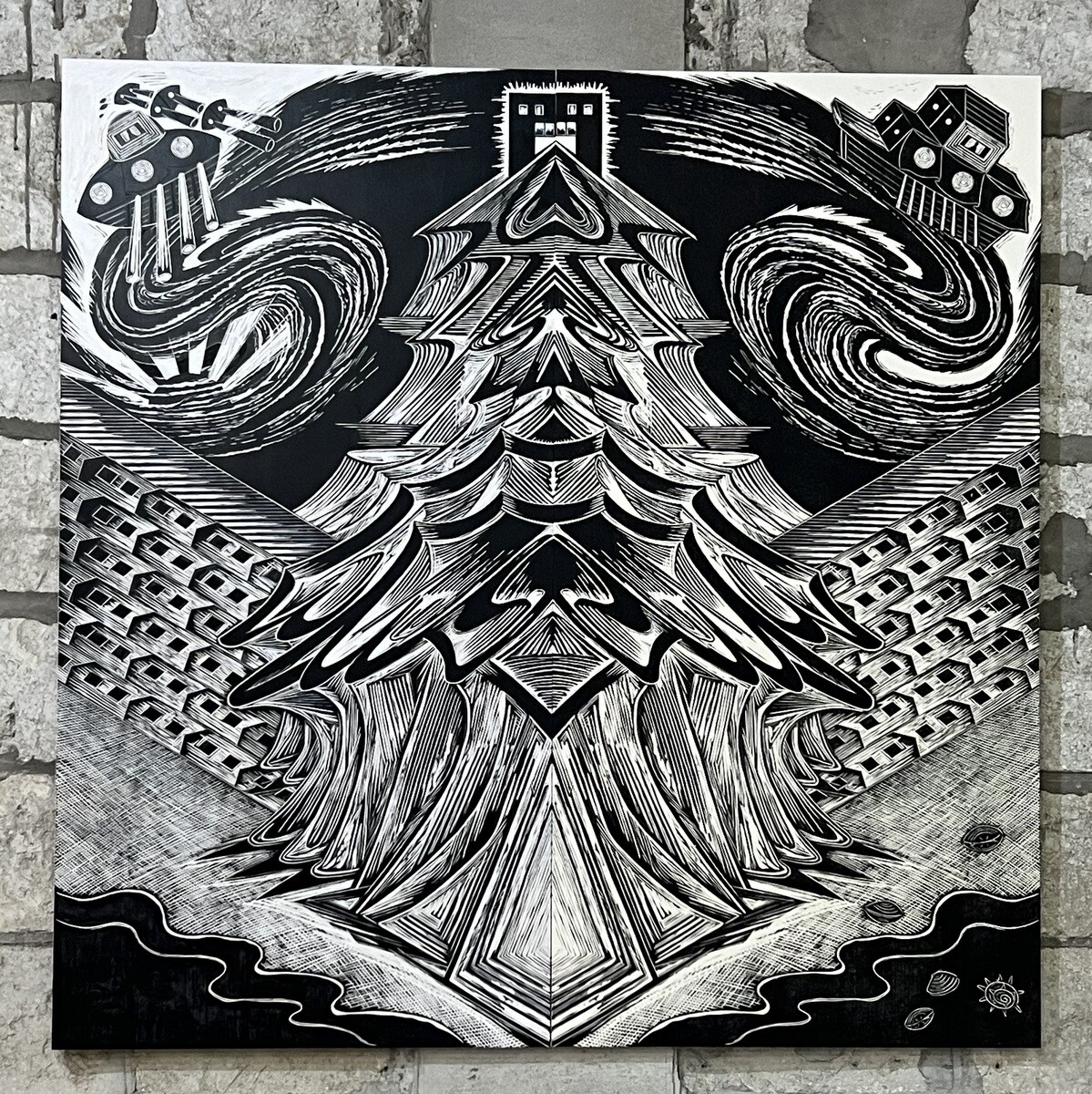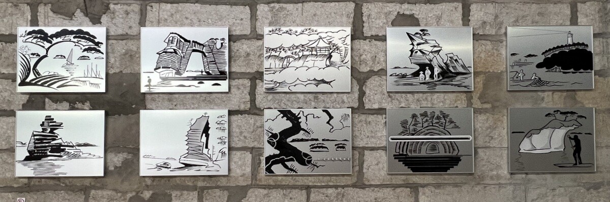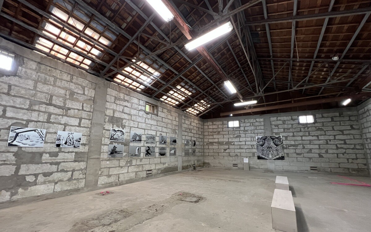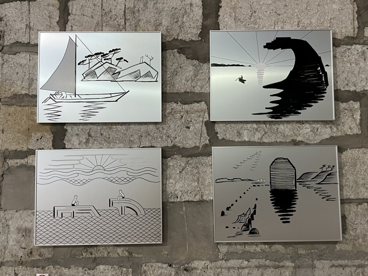 阿部家の石倉を使い、テーマは「新しい山水」とした松島や石巻の景色をモチーフとしたドローイングや木版画。