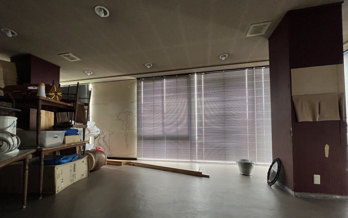 B1 雨宮庸介「石巻13分」 避難場所として使われ、未だその時の荷物などが残っている。映像作品なども流れ、最後には暗かった部屋がブラインドが上がることで明るくなる。
