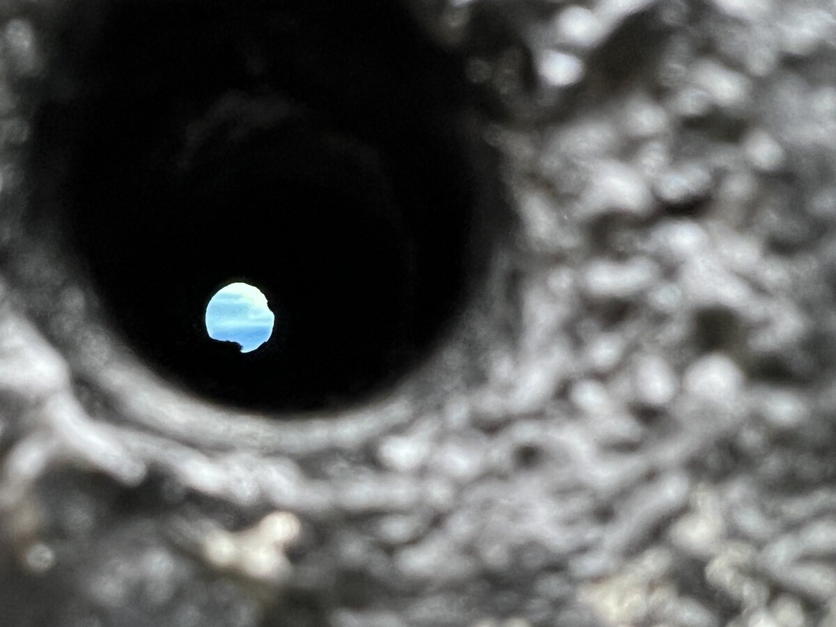 面白かったのが、これ。隣の建物の壁画の指の先に穴が空いていて、そこを覗くと映像が見える。