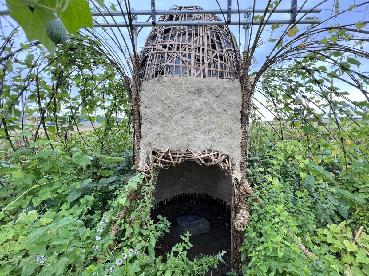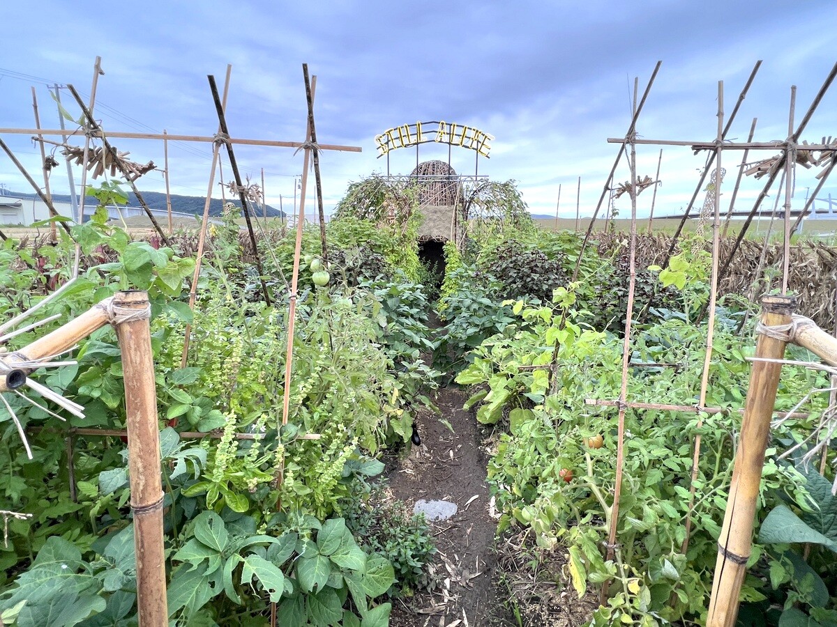 B8 保良雄 (やすら たけし)「ディス グラウンド イズ スティル アライブ」 津波後、綺麗に整地された空き地を再度掘り返して耕し、未だ微生物が住んでいることから、40種類もの植物を植えたとのこと。トマトなどがなっていた。