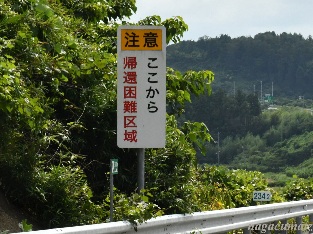常磐道で仙台へ。途中には、福島第一原子力発電所の西側を通るところもある。まず、こんな看板が。