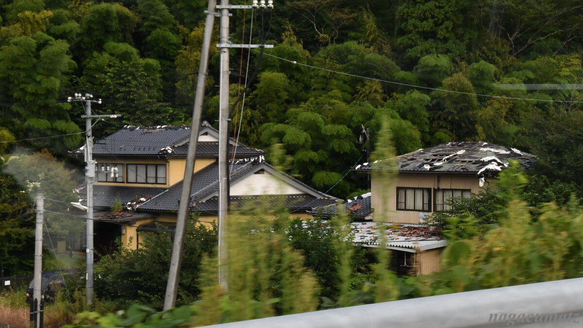 高速道路から見下ろすだけでも、道路が封鎖されている様子や、放置された家々が見える。