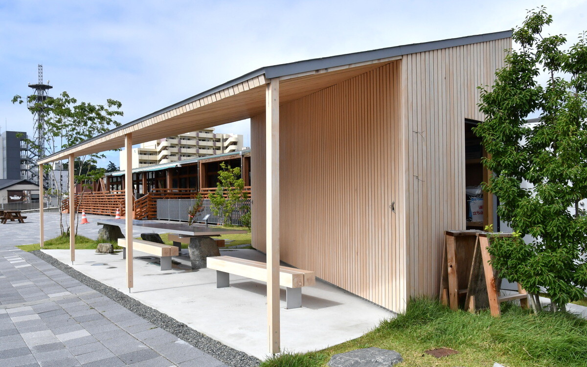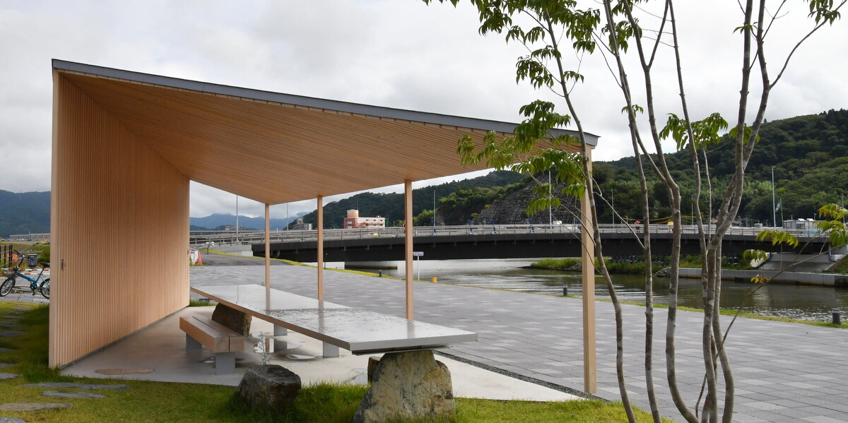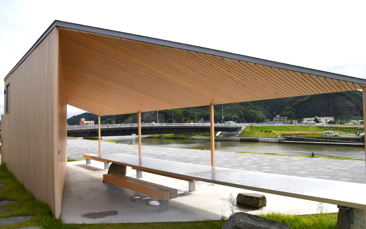 石巻市街地を流れる旧北上川の堤防上に、全部で12棟の東屋を造る計画があり、2022年現在は2棟(東屋 hと、東屋 i )が完成している。2019年、2021年。