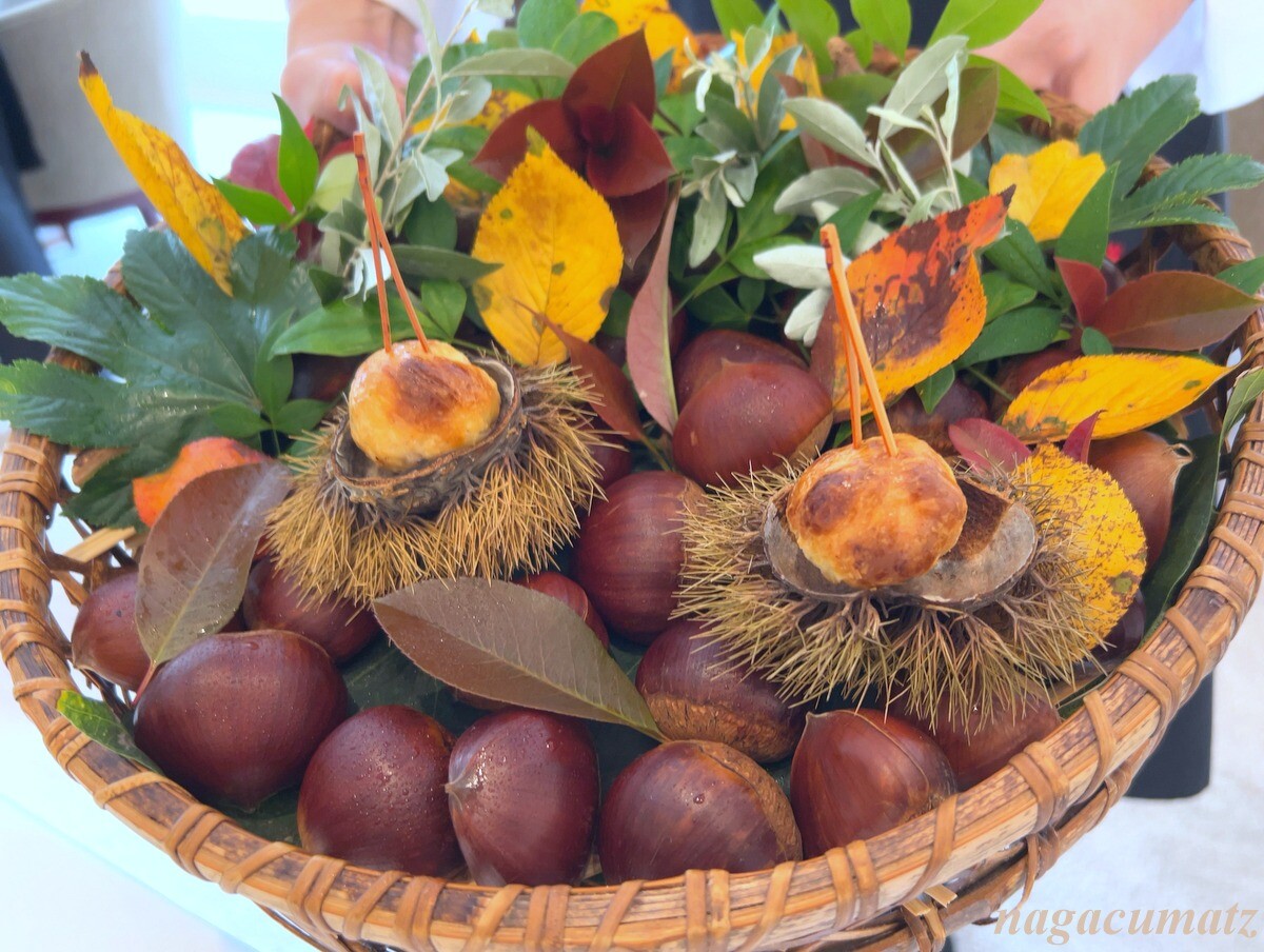 栗拾いとのことで、焼き立ての栗のパイを。パイの中には、栗のみならず、ヘーゼルナッツと青リンゴが入っている。