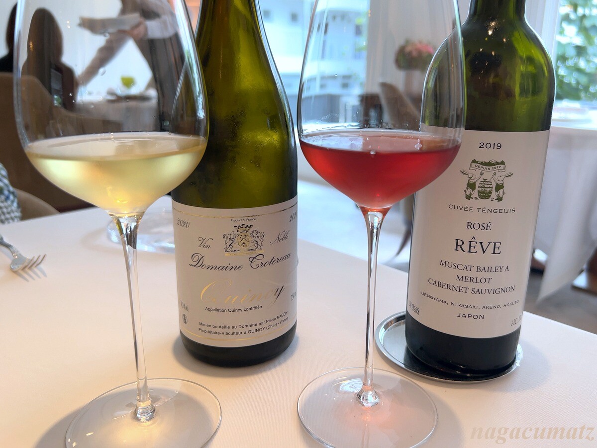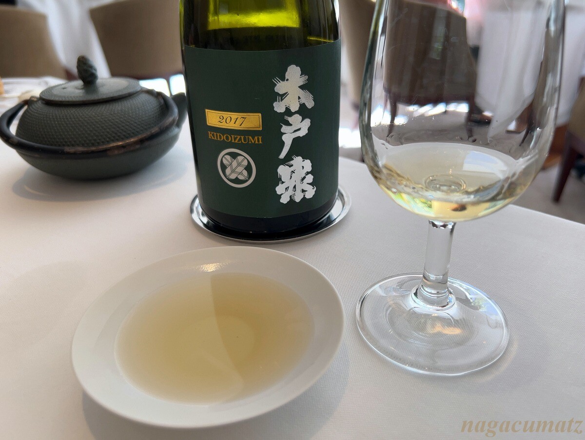 オマール海老のビスクには、日本酒も合わせられるとのことで、依頼。ビスクが温かいので、ぬる燗にして、少し香りを飛ばしてお料理に合うようにと。飲み比べる為にそのままも試飲させてもらった。山廃で温めない方が香りもしっかり。