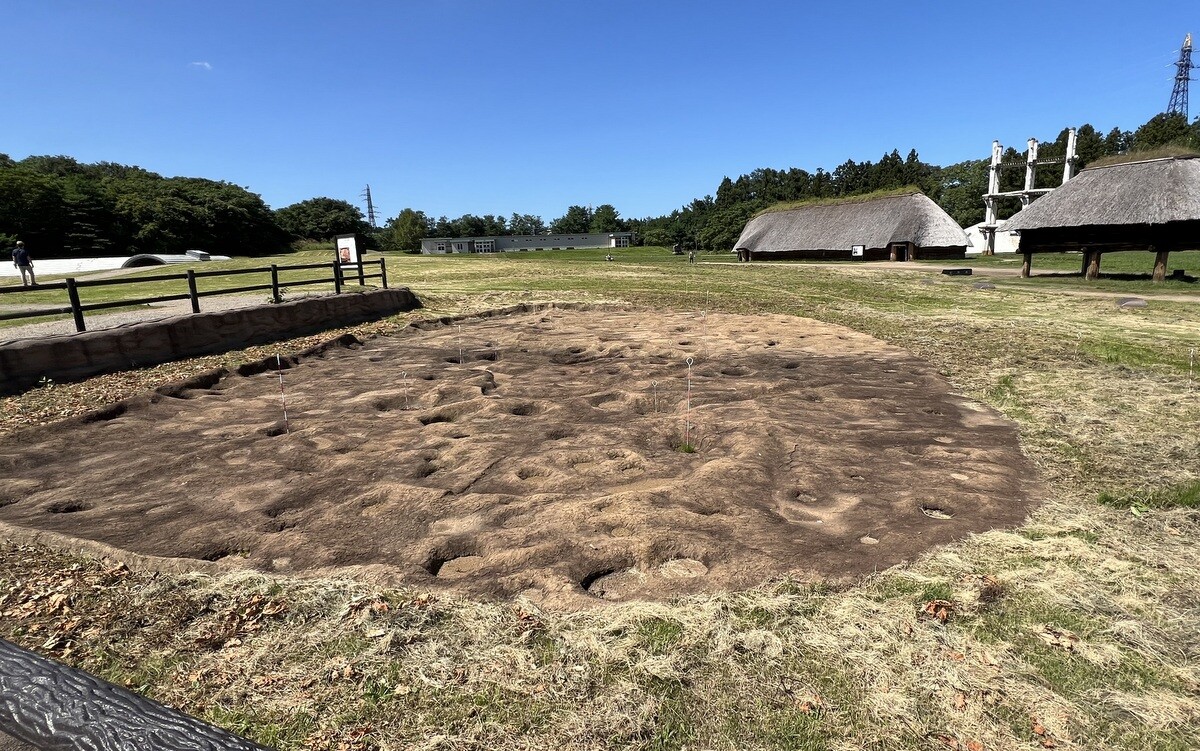 大型掘立柱建物跡 6本柱の長方形の建物と考えられ、柱穴は直径・深さともに約2メートルと、他の建物跡と比べて規模が大きく、穴の間隔は全て4.2メートル。中に直径約1メートルのクリの柱が残っている。縄文時代中期後半(紀元前約2600年)のものと考えられている。
