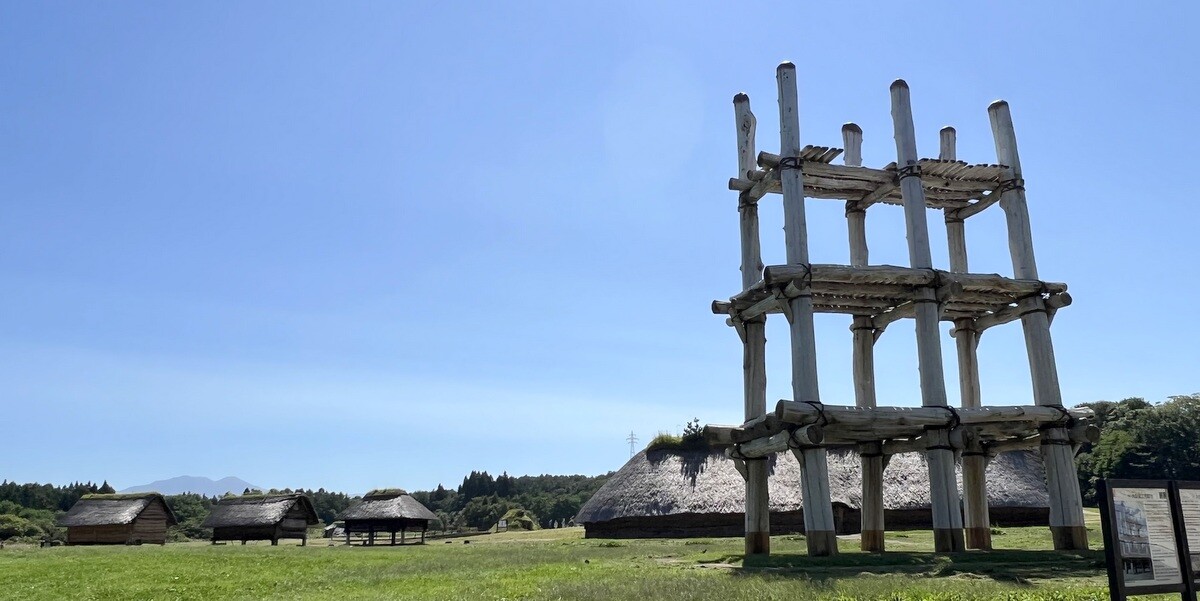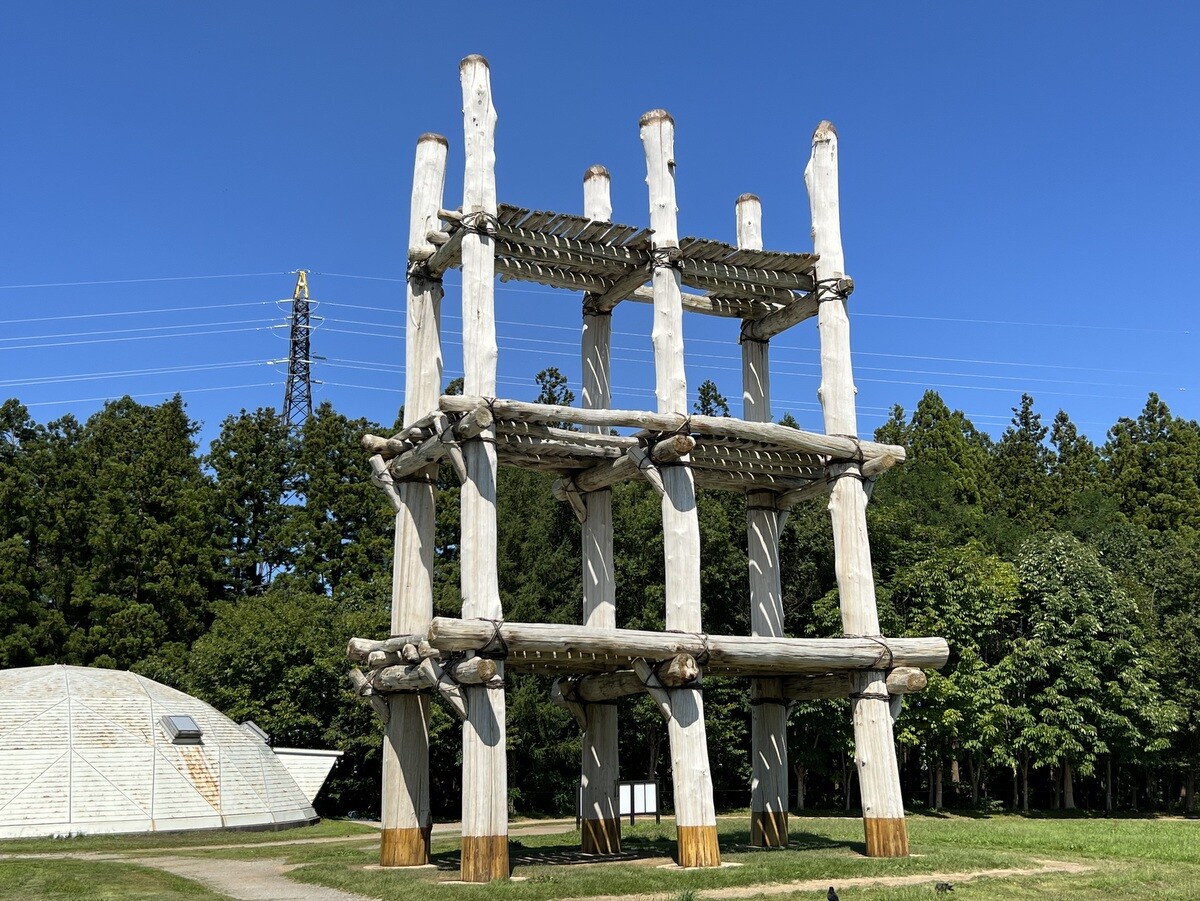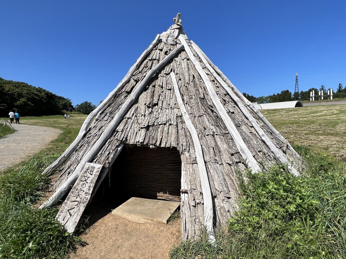 竪穴建物(復元)期限前約3000年の縄文時代中期の竪穴建物を復元。550棟以上が発見されており、中央部分のくぼみには炉が備えられていた。屋根は発掘調査結果や民俗例を参考にして、茅葺き、樹皮葺き、土葺きの3種類が復元されている。
