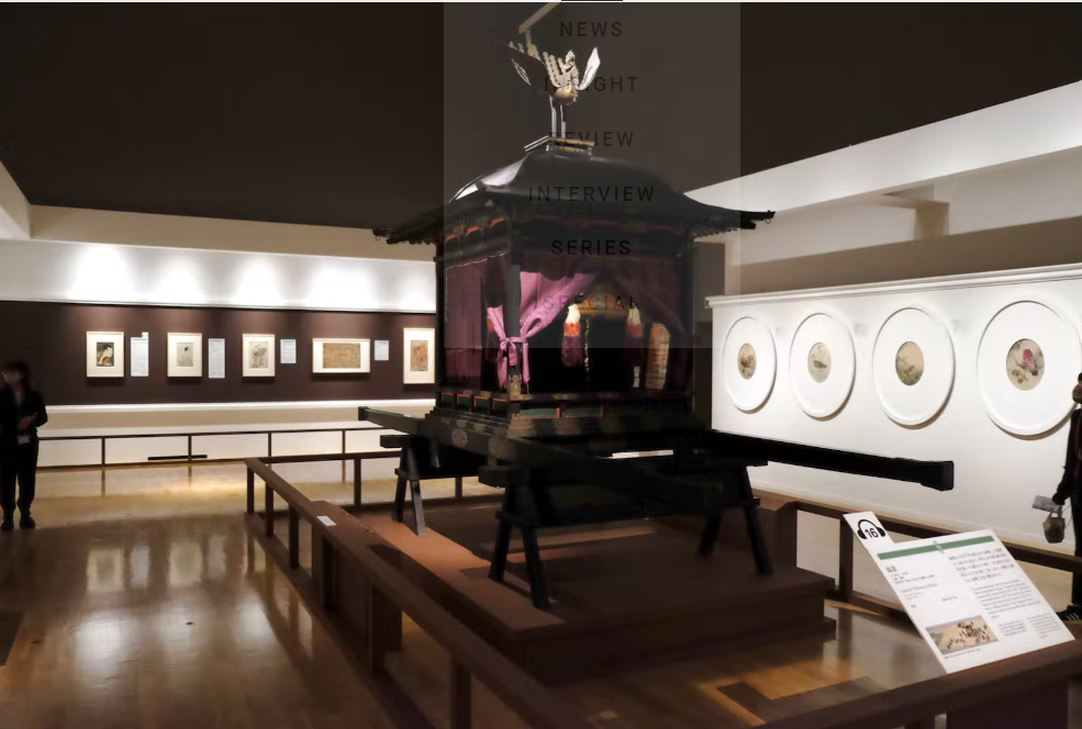 「鳳輦」明治天皇が京都から東京に行幸する際に、実際に使われたもの。漆塗りで、一番上には鳳凰が付いている。3つの鳳輦を使い分けていたとのこと。
