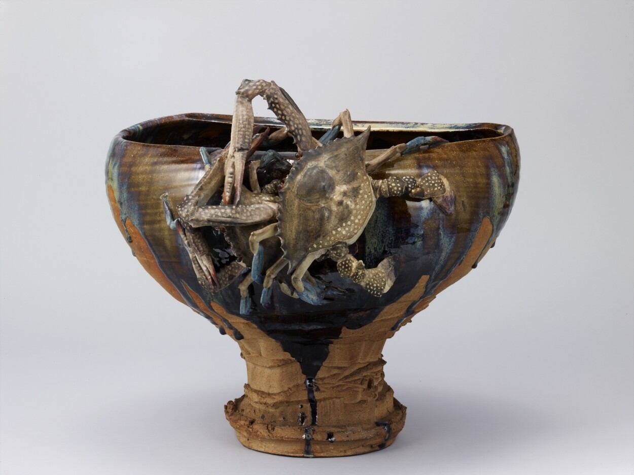 「褐釉蟹貼付台付鉢」 初代宮川香山 明治14年(1881)