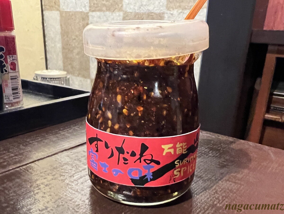 味変にと、自家製すりだねも。少しで結構辛めな食べるラー油のよう。