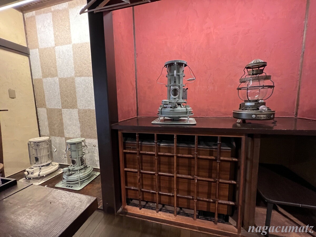 床の間?や棚の上には、こんなレトロなストーブが飾ってあった。