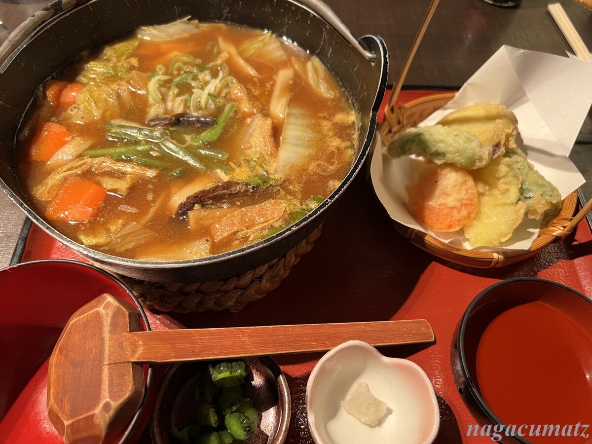 野菜ほうとう天ぷらセット 1580円と、豚肉ほうとう天ぷらセット 1780円を。