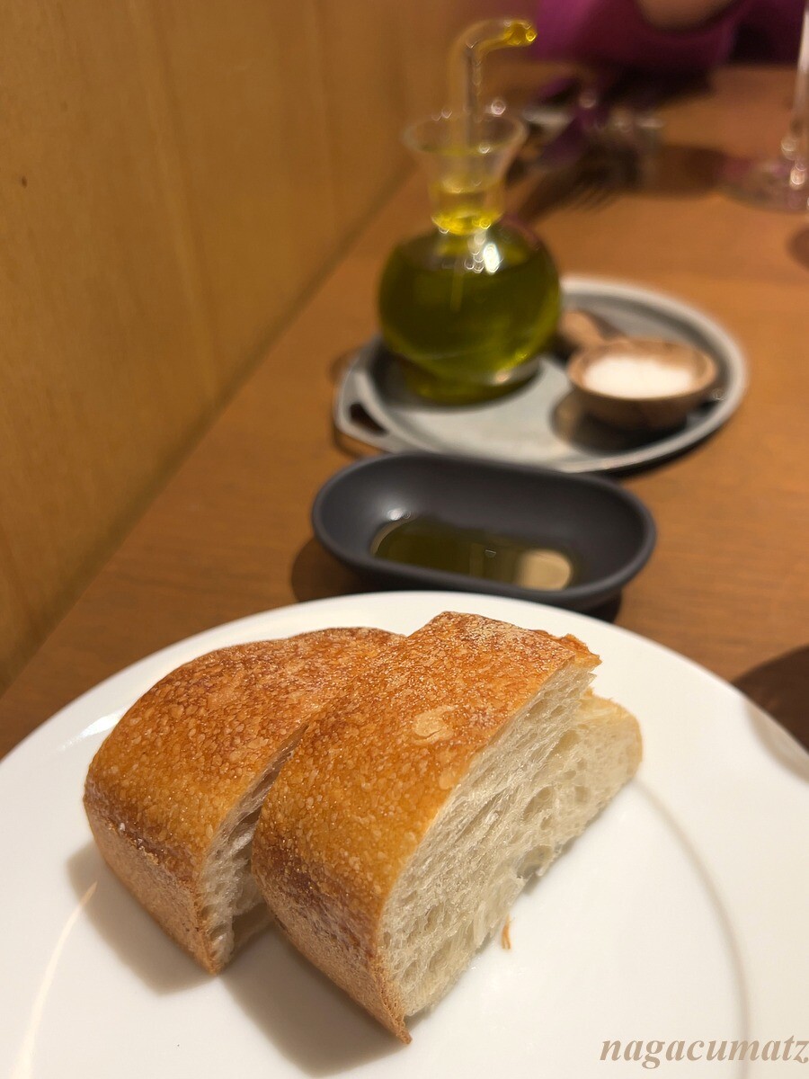 オリーブオイルと、ゲラン産の塩を好みでつけるバゲット。