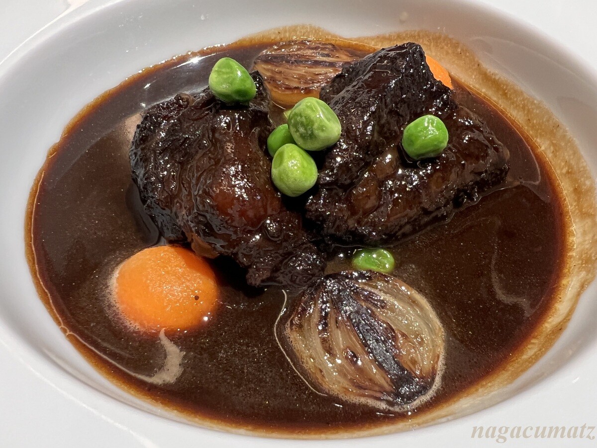 メインは、牛ハラミのステーキフリットか、牛ホホ肉の赤ワイン煮だったので、赤ワイン煮を選択。もう少しトロトロ煮込まれたイメージを持っていたのだが。お肉ががっつり硬め。ソースと言うよりもスープ状態の所に、別に運ばれて来たマッシュポテトを落していただく。