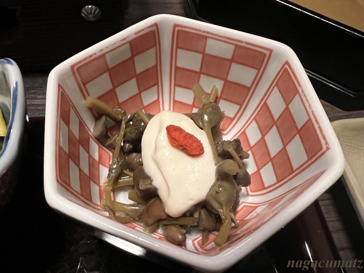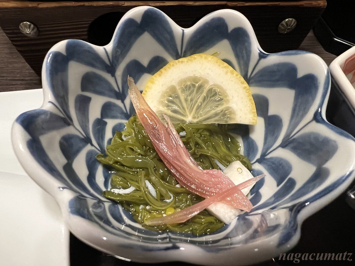 先付 みずの実白和え 久しぶりにみずが食べられて、しかも醤油漬けでないもので嬉しい。