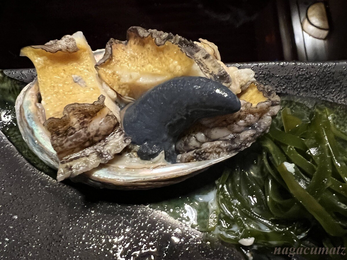 活アワビは、まず天然の塩味でいただき、後でバター風味でも。