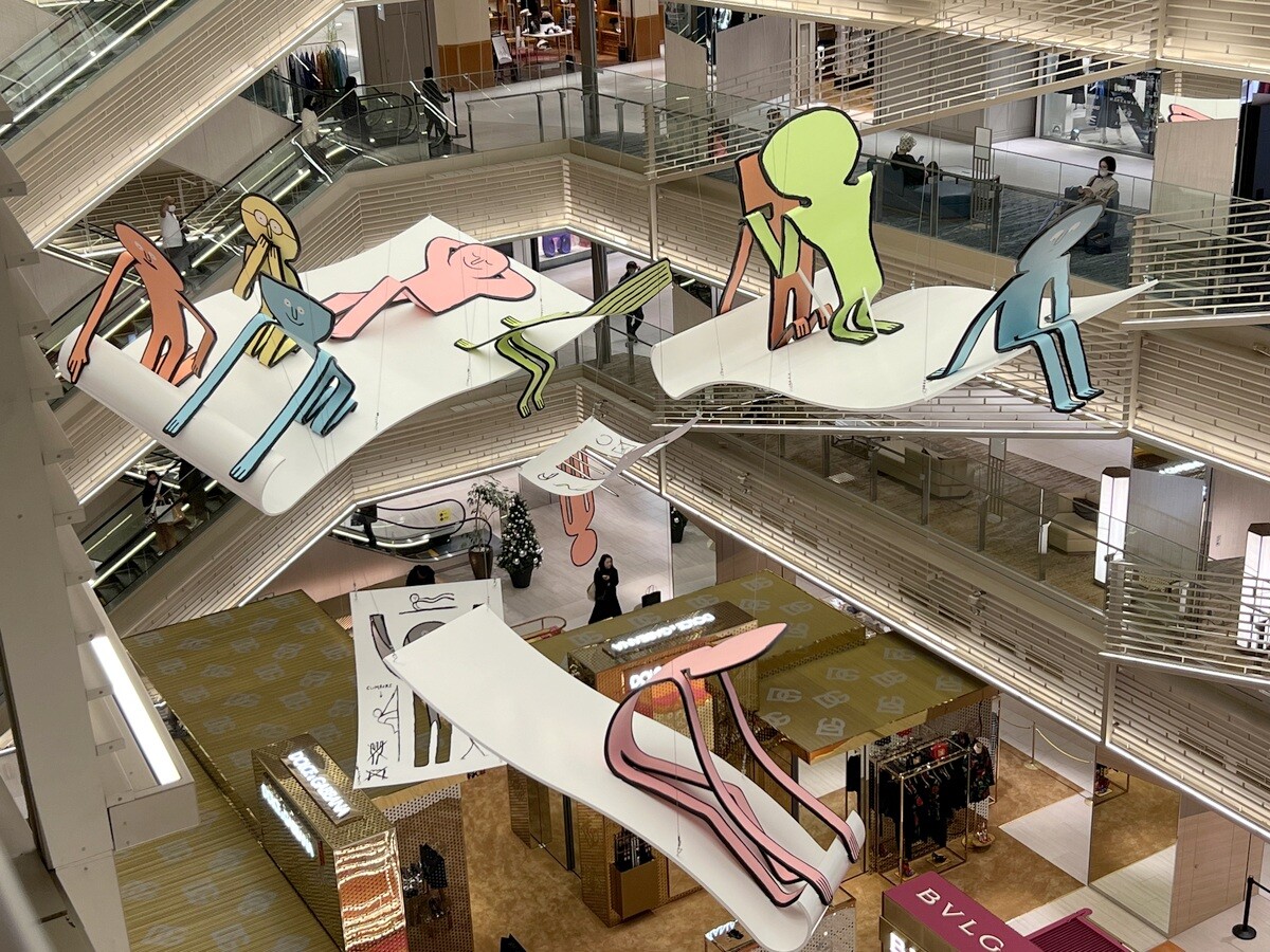 2022年12月20日 ジャン・ジュリアン 作品 @ GINZA SIX (12月’22) GINZA SIX の吹き抜けには、世界的アーティスト達の色々な作品がディスプレイされるので、楽しみにしているのだが、名和晃平氏の作品が当初よりも長い1年半以上展示されていた後、ジャン・ジュリアン Jean Jullien 氏の作品「The Departure」に10月末から変わった。予定では、2024年春まで展示されているとのこと。動画も公開されていた。 GINZA SIXの中央吹き抜け空間では、これまでに草間彌生、ダニエル・ビュレン、ニコラ・ビュフ、塩田千春、クラウス・ハーパニエミ、吉岡徳仁、名和晃平(敬称略)と世界で活躍するアーティストの作品を展示している。オープニング当時の2017年から2019年春までは日本に居なかったので、最初の3作品を見ることは出来なかったのだが、以降の作品は: にほんブログ村にほんブログ村 「アート鑑賞」カテゴリの最新記事 < 前の記事次の記事 > コメント コメントフォーム 名前 コメント 記事の評価 リセット リセット 顔 星 情報を記憶 コメントを投稿する