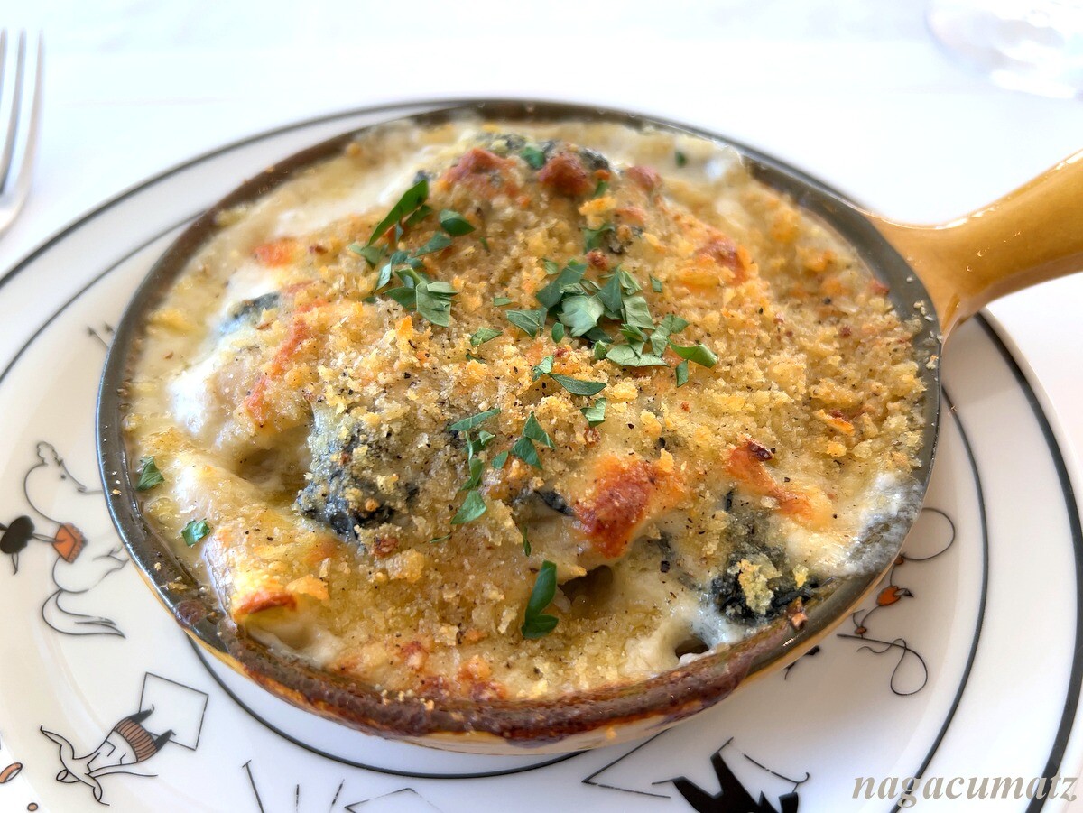 数量限定の牡蠣とカーボロネロのペンネグラタン カーボロネロとはイタリア産のケール。大きな牡蠣がごろごろと4つ入っており、ベシャメルソースにも牡蠣の風味がしっかりあってとても美味しい。