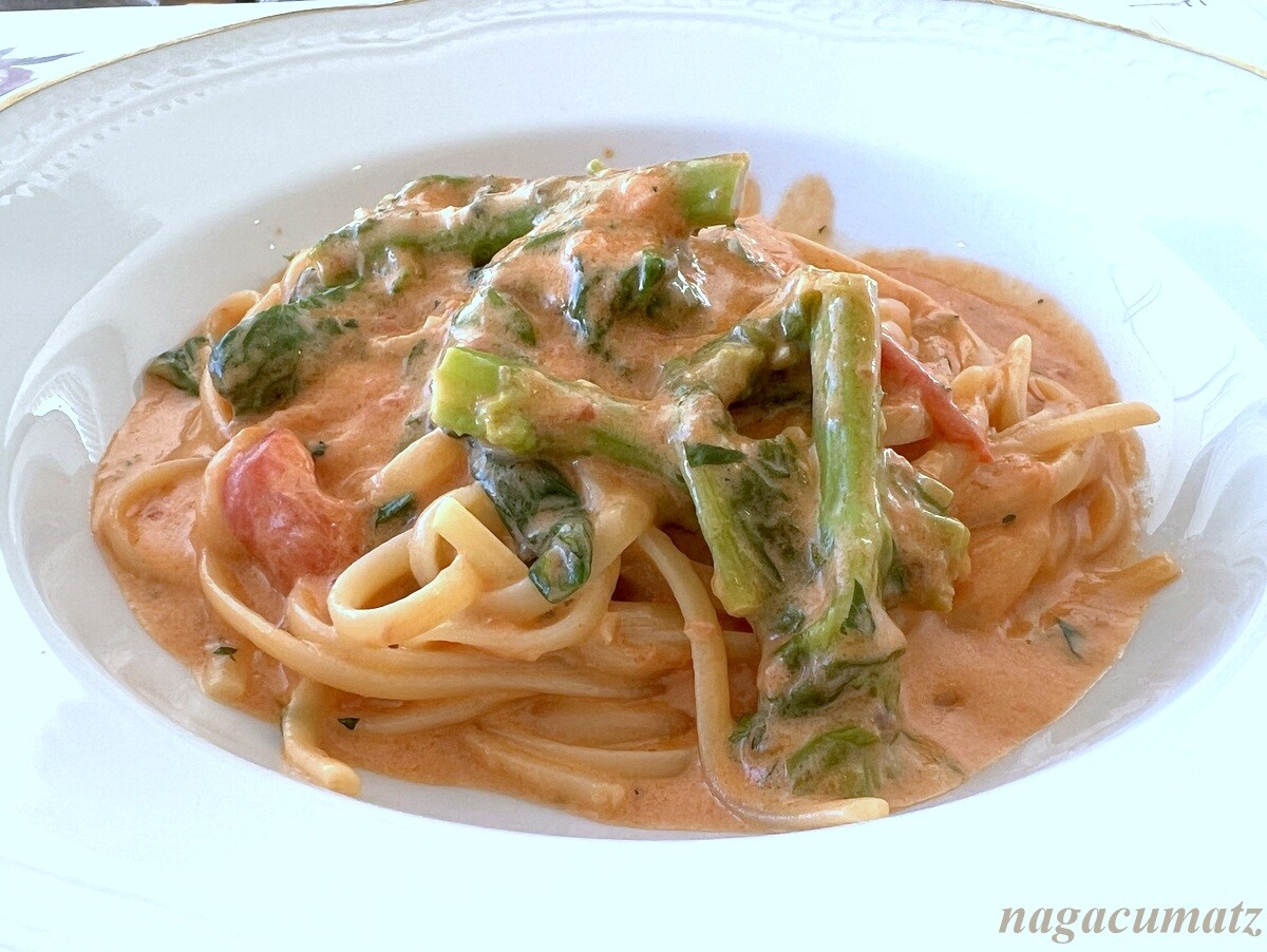 リングイネ 菜の花とウニのトマトクリームソース ウニのお味はあまりしないが、それでも美味しいかと。