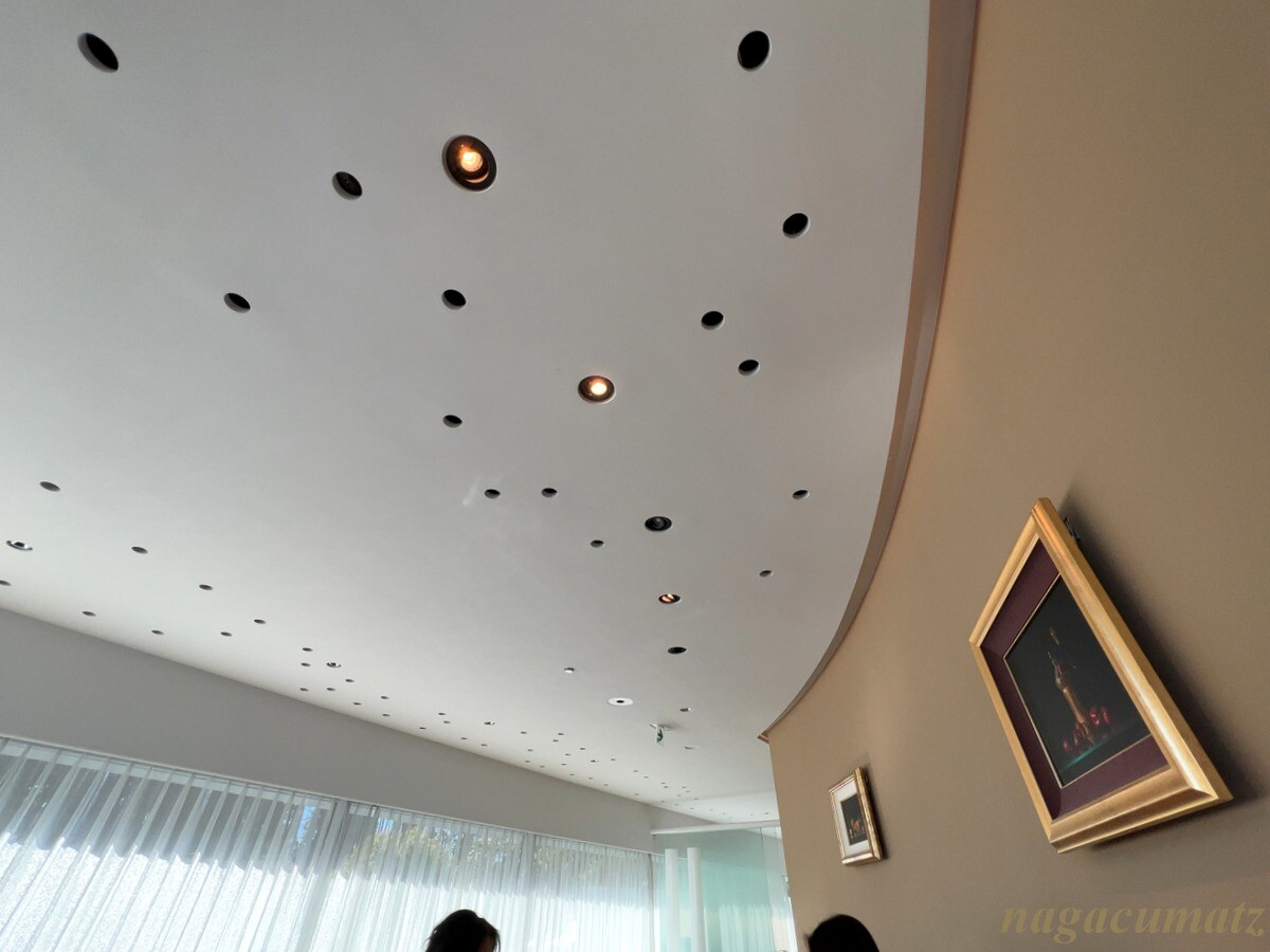 ここのウリは美味しいお料理も勿論あるが、雰囲気や景色も。美術館のカーブした建物の延長上にあるレストランの店内はやはりカーブしており、端にはホキ美術館で唯一の彫刻である宮田亮平氏の作品が見える。