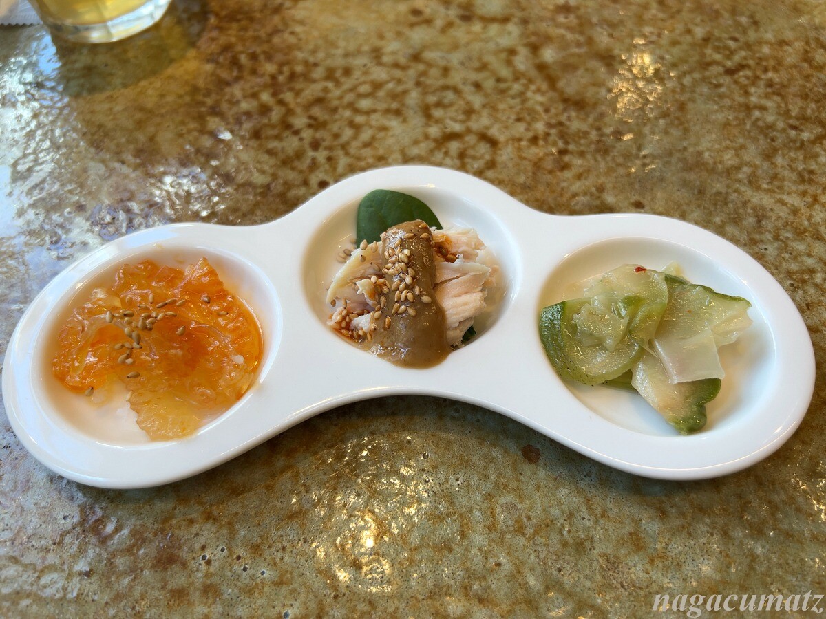 前菜は、こだわりクラゲ、棒々鶏、搾菜
