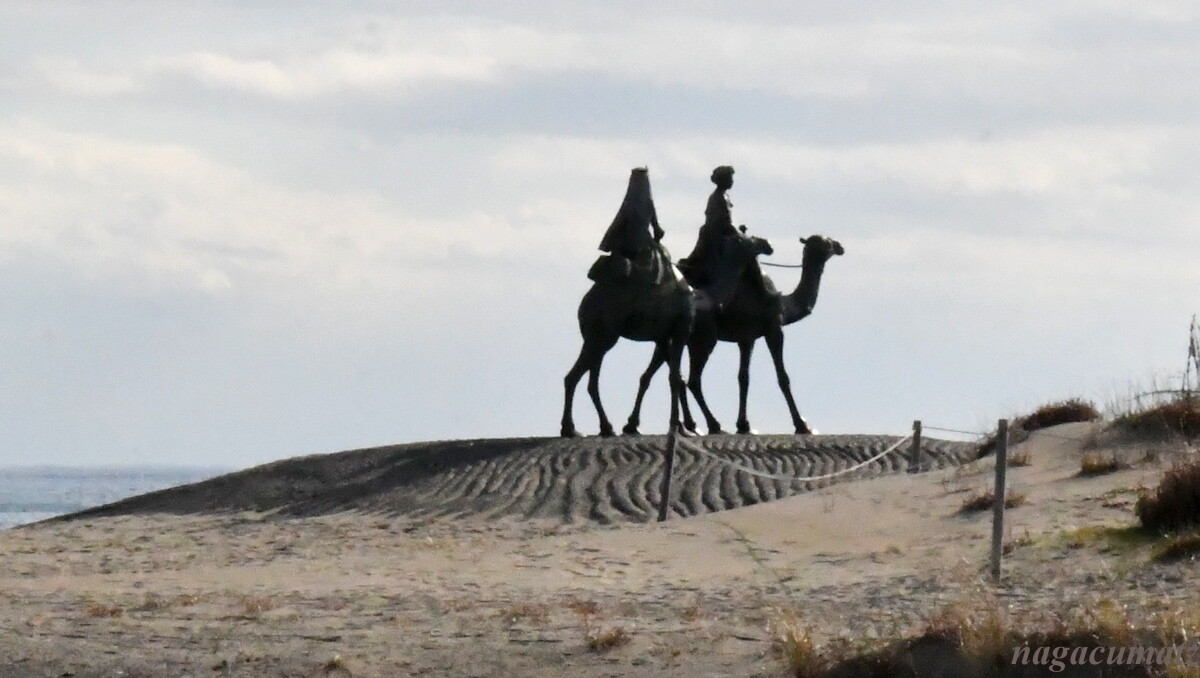 砂浜には、ラクダの像まである。