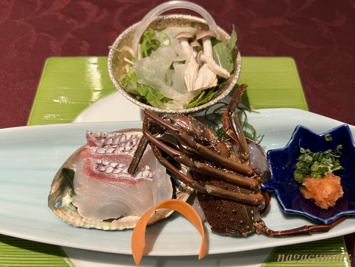 刺身 伊勢海老、平目、鮪の赤身、かんぱち、鯛