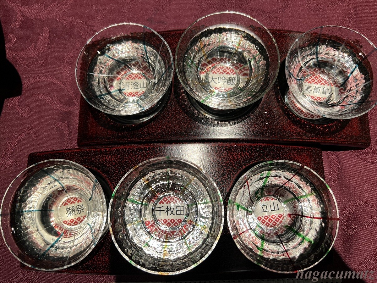 下左から:獺祭 純米大吟醸(岩国)、寿萬亀大山千枚田 純米吟醸(鴨川)、銀嶺立山 吟醸酒(富山)