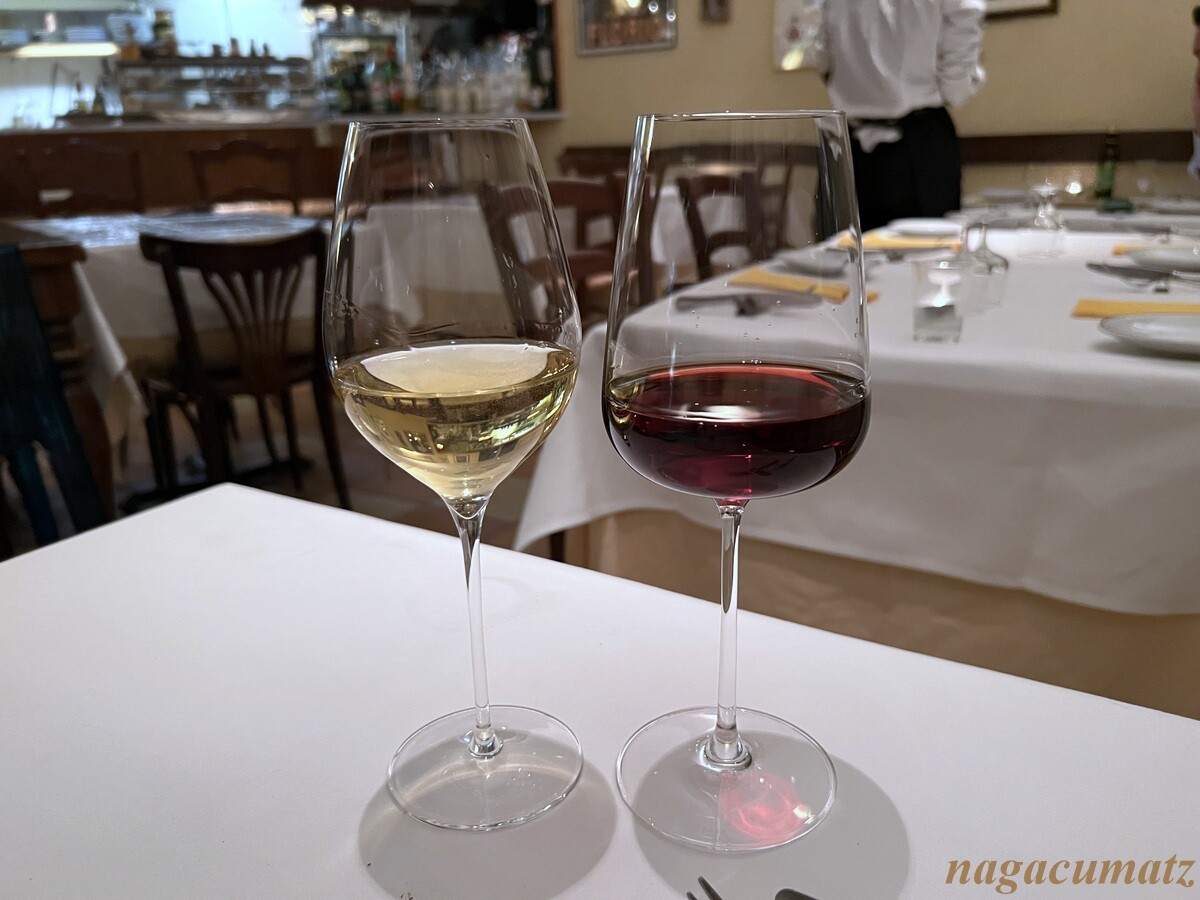 グラスワインは白と赤それぞれ3種類。結局、全種類をいただき、白を追加。各 白1200円、赤1300円。