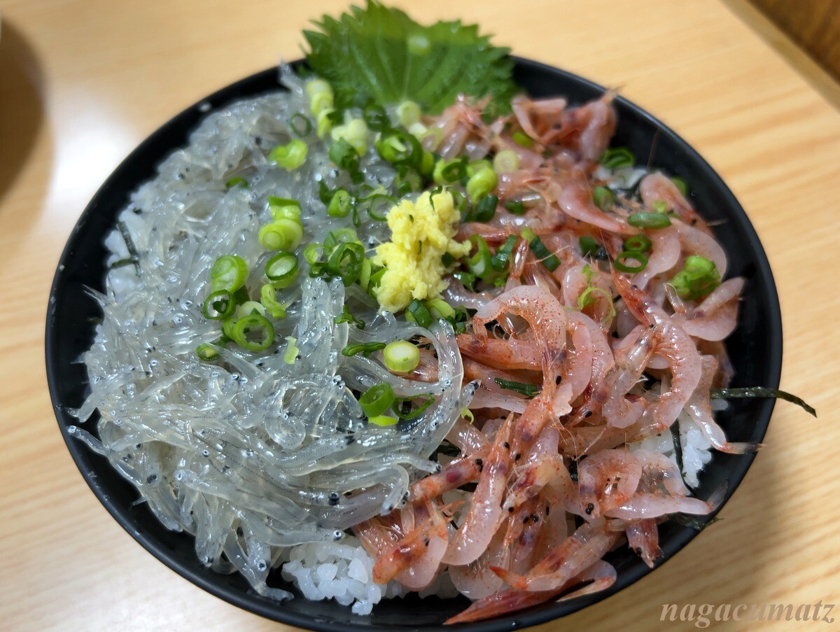 するが丼 1450円 生しらすと生桜海老のハーフ&ハーフ