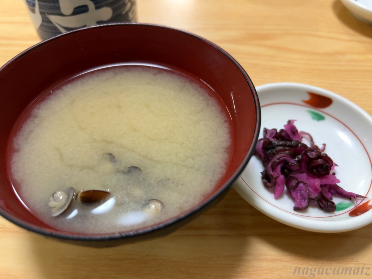 いずれにも、しじみのお味噌汁とお漬物が付く。お味噌汁が美味しい。