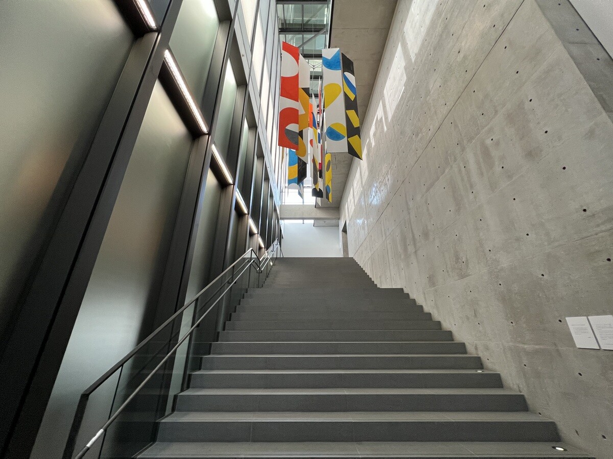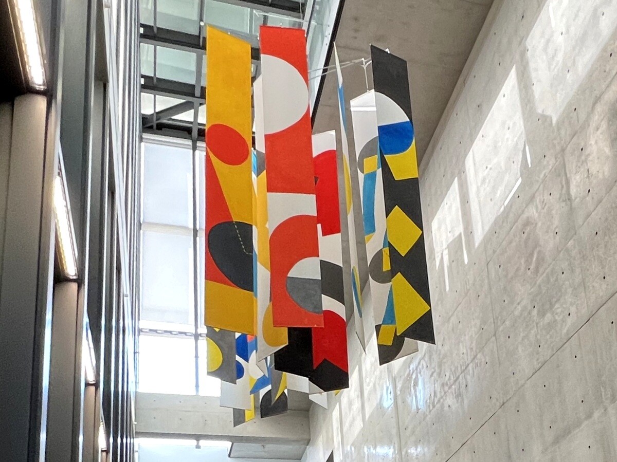 18枚のバンナーの表裏の色が異なる為、計36枚の組み合わせとなる作品。