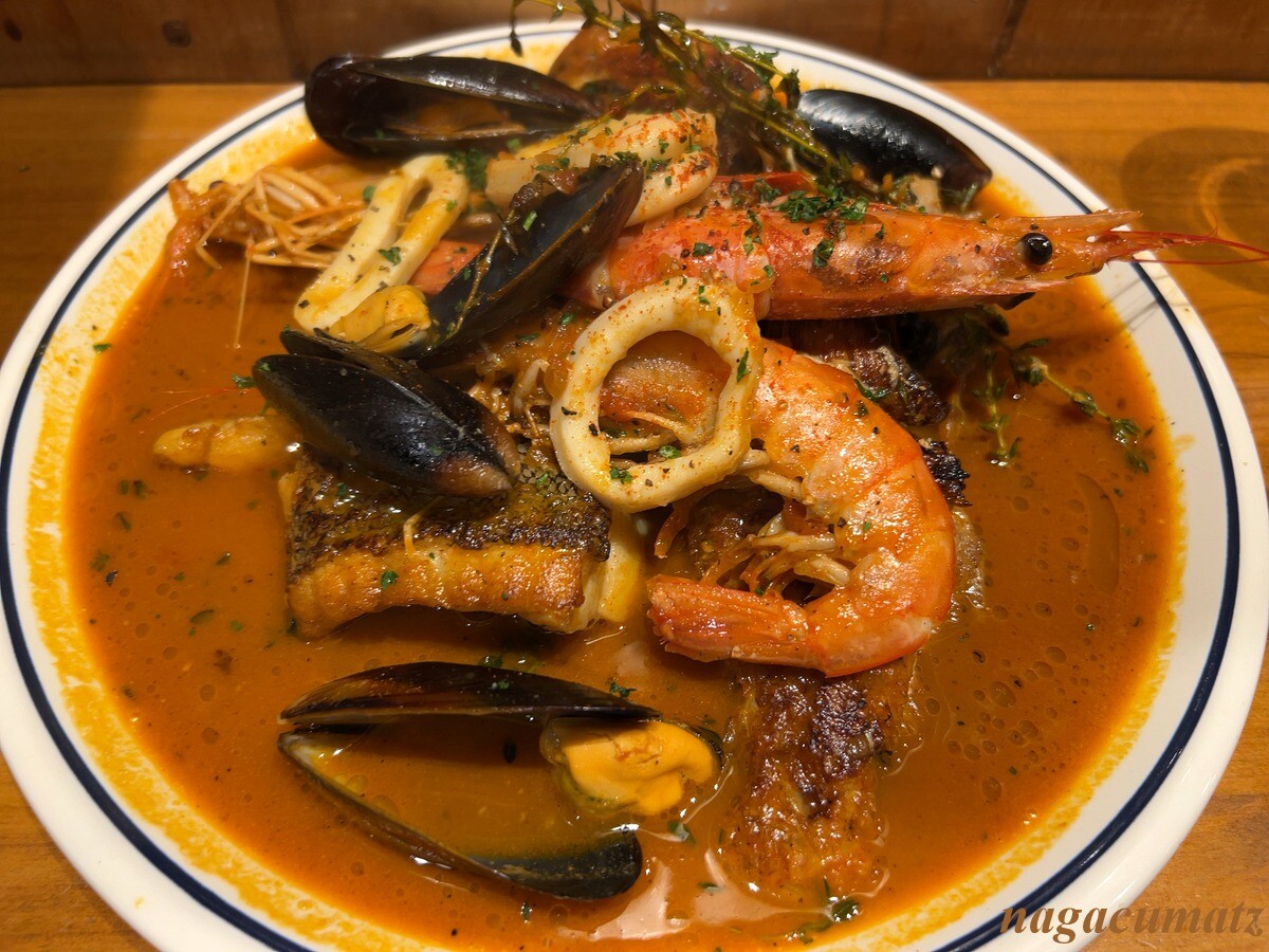 ユメカサゴ(ノドグロ)がまるっと1尾、そしてタラの大きな切り身、有頭海老も3尾、イカ、ムール貝ともりもり。