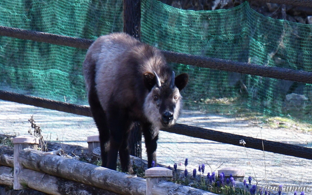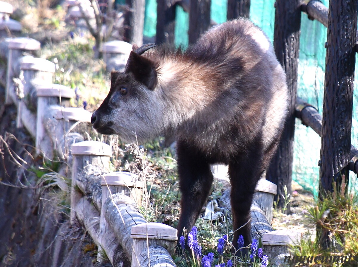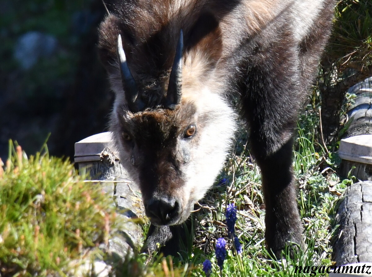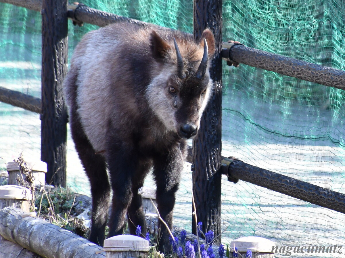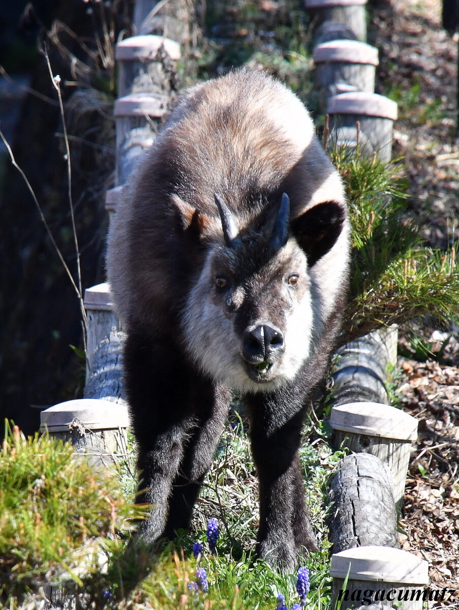 こちらを認識しているのに、全然動じることなく、むしゃむしゃ。。。綺麗に植えられているムスカリが、ニホンカモシカの歩いて来た後ろにはもう生えていないので、どうやら奥から順番に食べ進んで来ているようだった!
