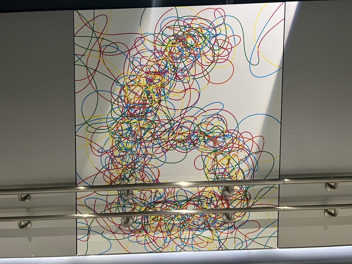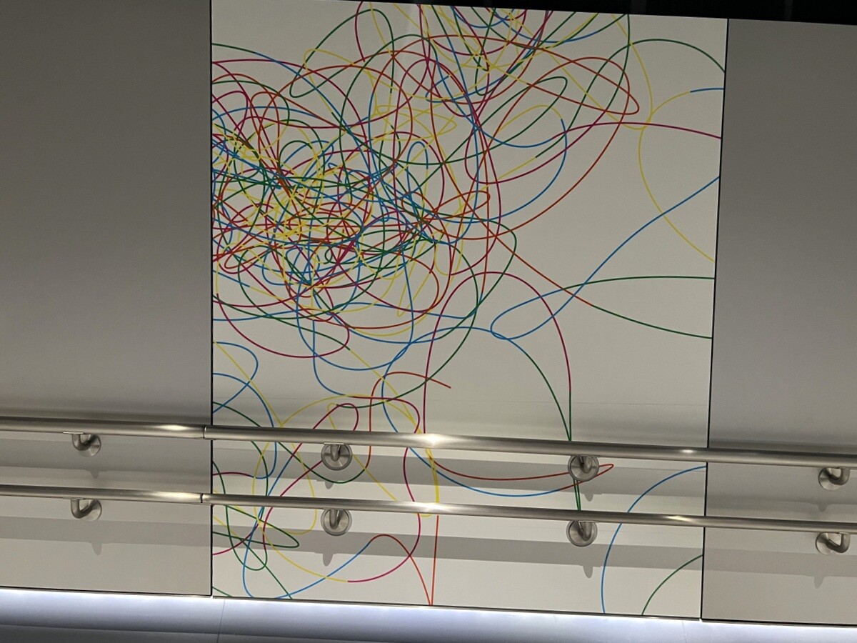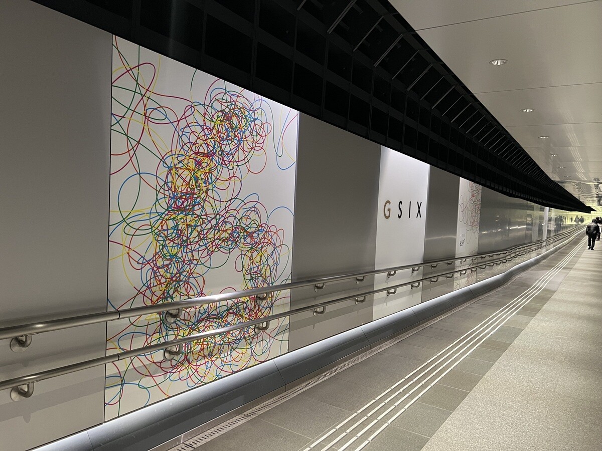 B2の地下連絡通路(あづま通り地下)を飾るのは、鬼頭健吾氏の作品からインスピレーションを得て制作されたヴィジュアルグラフィックとのこと。