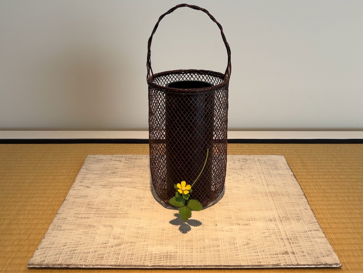 キジムシロの花はもとより、この台も須田氏制作とのこと。