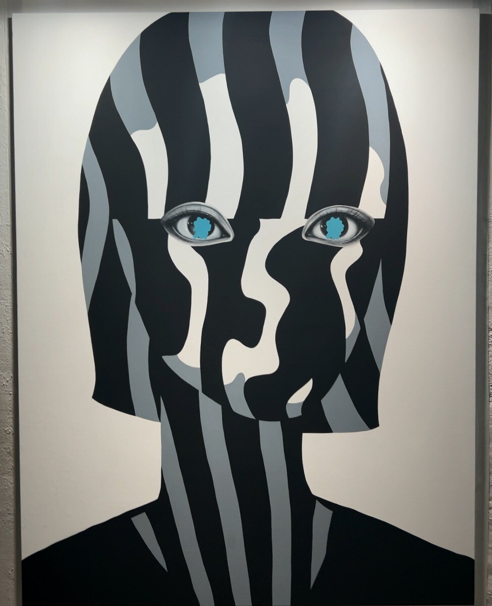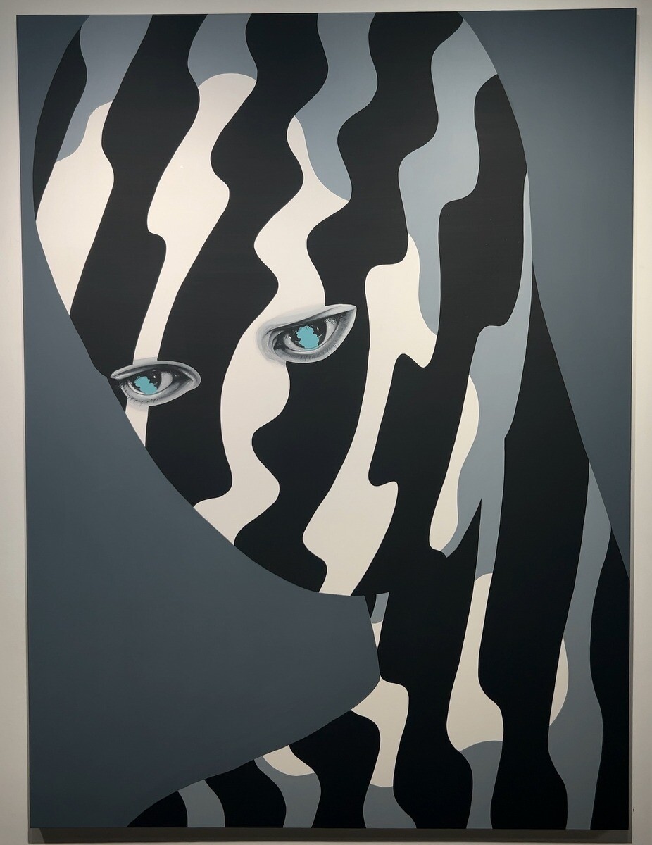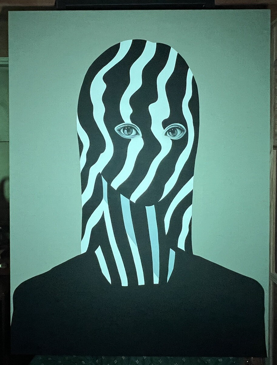 SNSやブログなどのインターネット上にアップロードされた無数のセルフィーやスナップ写真から、ビデオプロジェクターを使って目だけを正確にトレースし、肖像の輪郭はモデルとした実際の人物を用い、人種・性別・髪型・体型などを別の人間に描き変え、第一次世界大戦の頃から使用されたダズル迷彩を使用し、インターネットの匿名性や情報の不確かさを現代人の肖像画として発表しておられる作家さん。