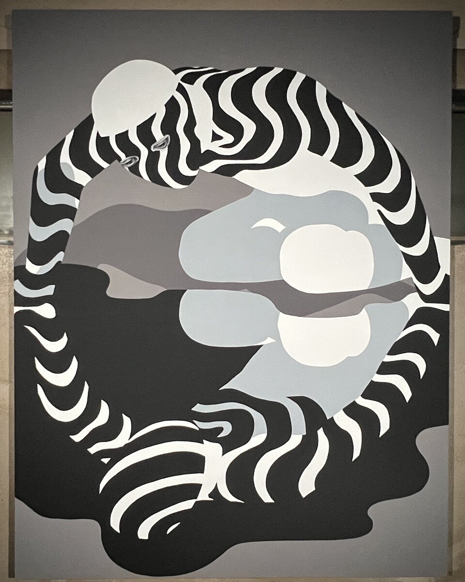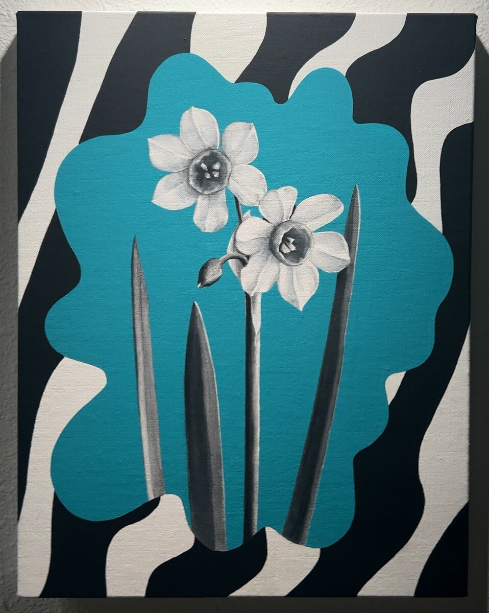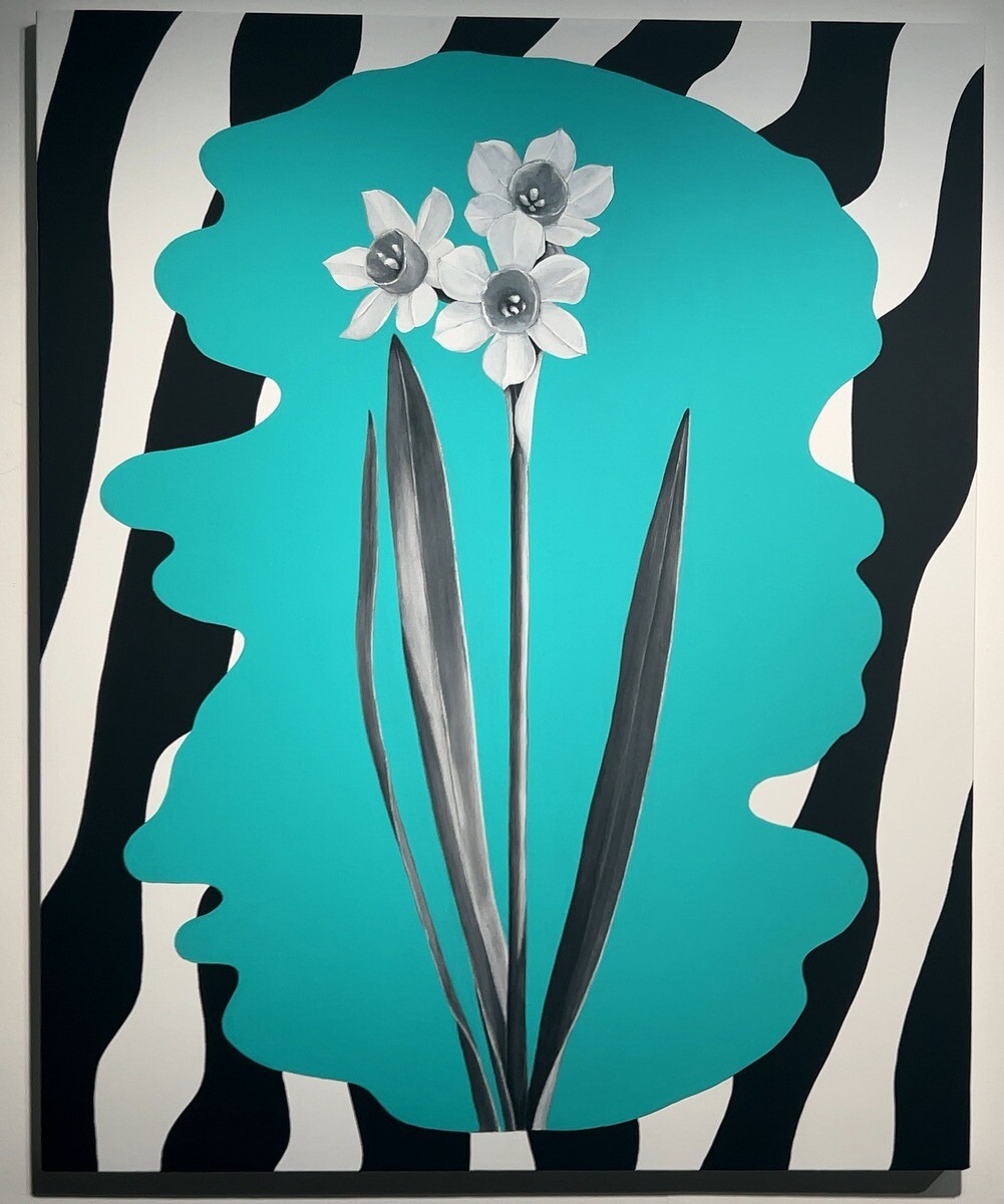 SNSやブログなどのインターネット上にアップロードされた無数のセルフィーやスナップ写真から、ビデオプロジェクターを使って目だけを正確にトレースし、肖像の輪郭はモデルとした実際の人物を用い、人種・性別・髪型・体型などを別の人間に描き変え、第一次世界大戦の頃から使用されたダズル迷彩を使用し、インターネットの匿名性や情報の不確かさを現代人の肖像画として発表しておられる作家さん。